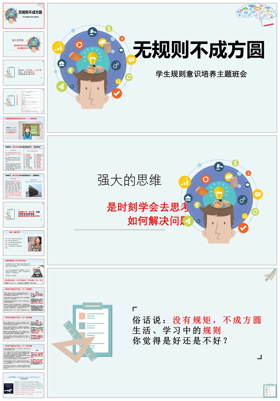 【8107】【规则话题】《无规则不成方圆》学生规则意识培养主题班会PPT(课件+视频)