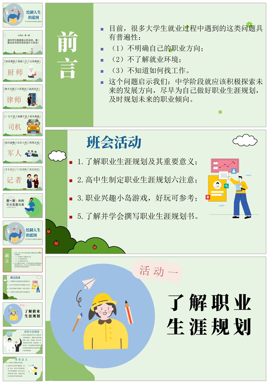 【8115】【生涯规划】《绘制人生的蓝图》中学生职业生涯规划主题班会PPT(课件+视频)