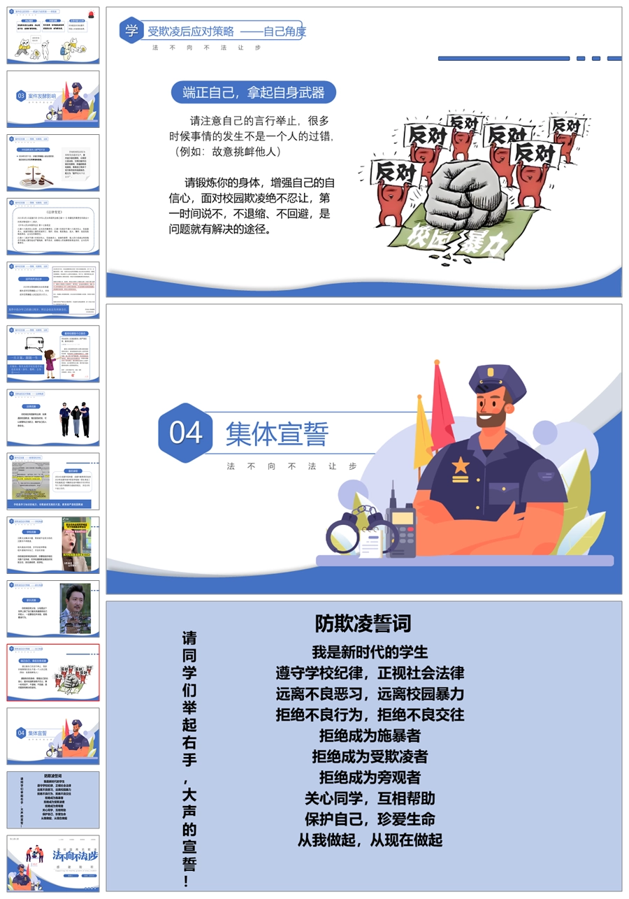 【8118】【校园欺凌】《法不向不法让步》拒绝校园欺凌主题班会PPT(课件+教案+视频)