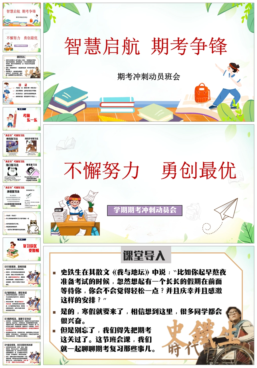 【8360】【期末动员】《和小伙伴一起战期末》期末考试动员主题班会PPT(课件+教案+挑战书)