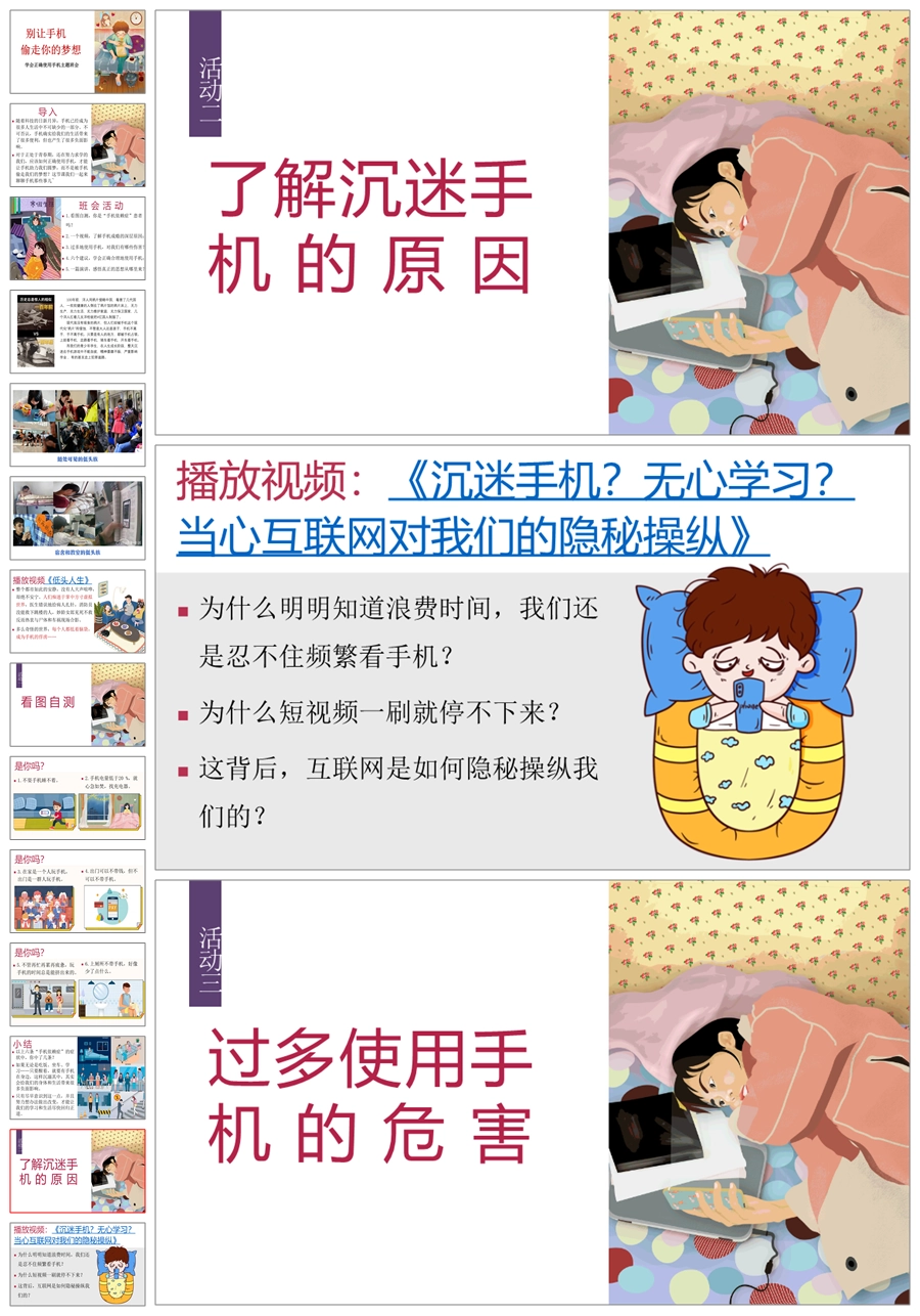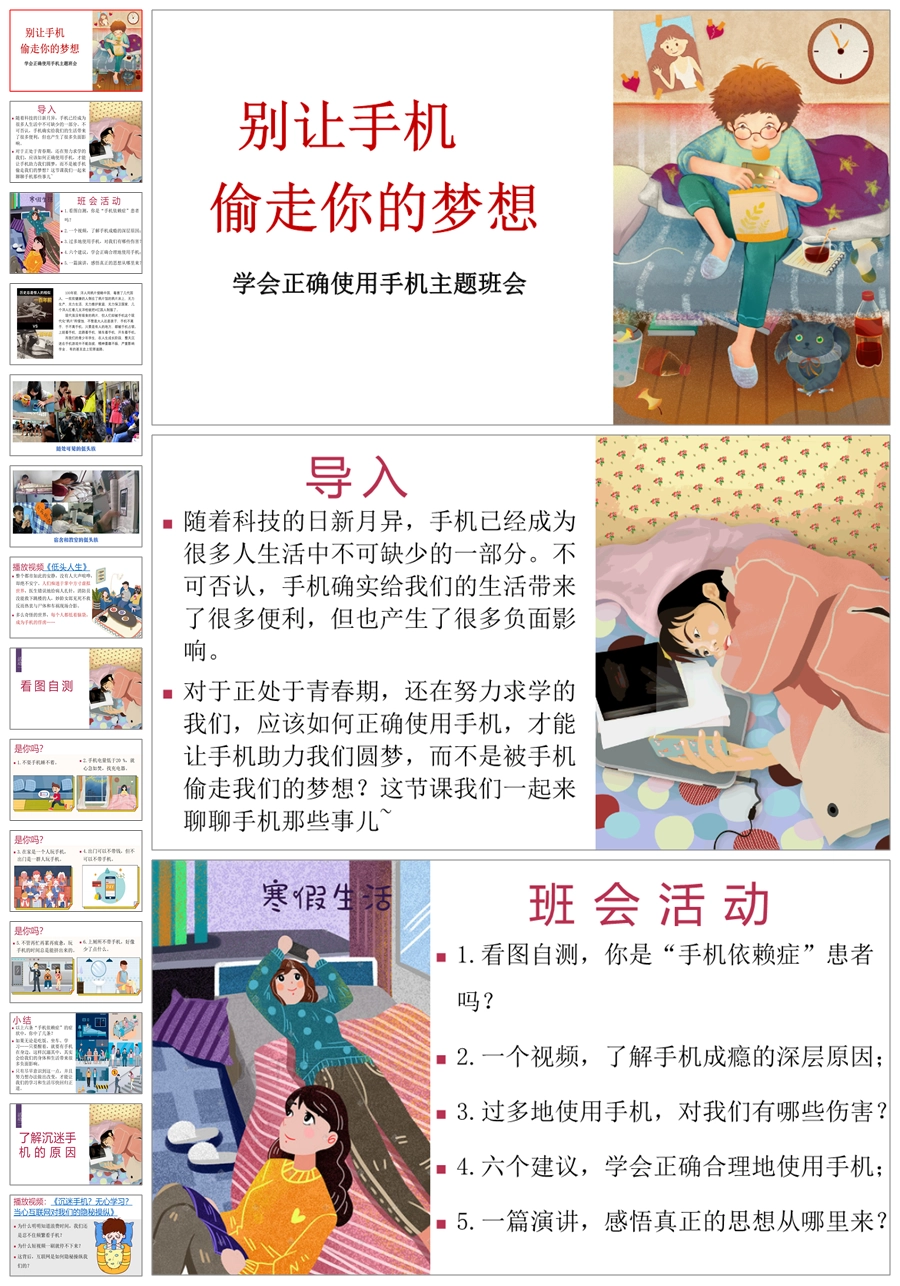 【8331】【手机管理】《别让手机偷走你的梦想》拒绝沉迷手机主题班会PPT(课件+教案+视频)
