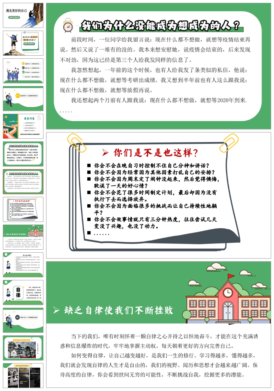 【8160】【自律话题】《遇见更好的自己》以自律为主题自律主题班会PPT(教案+课件+视频)