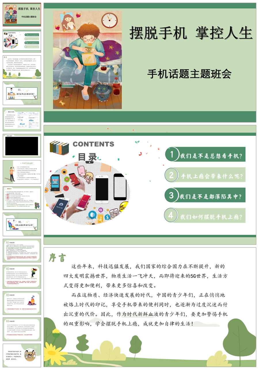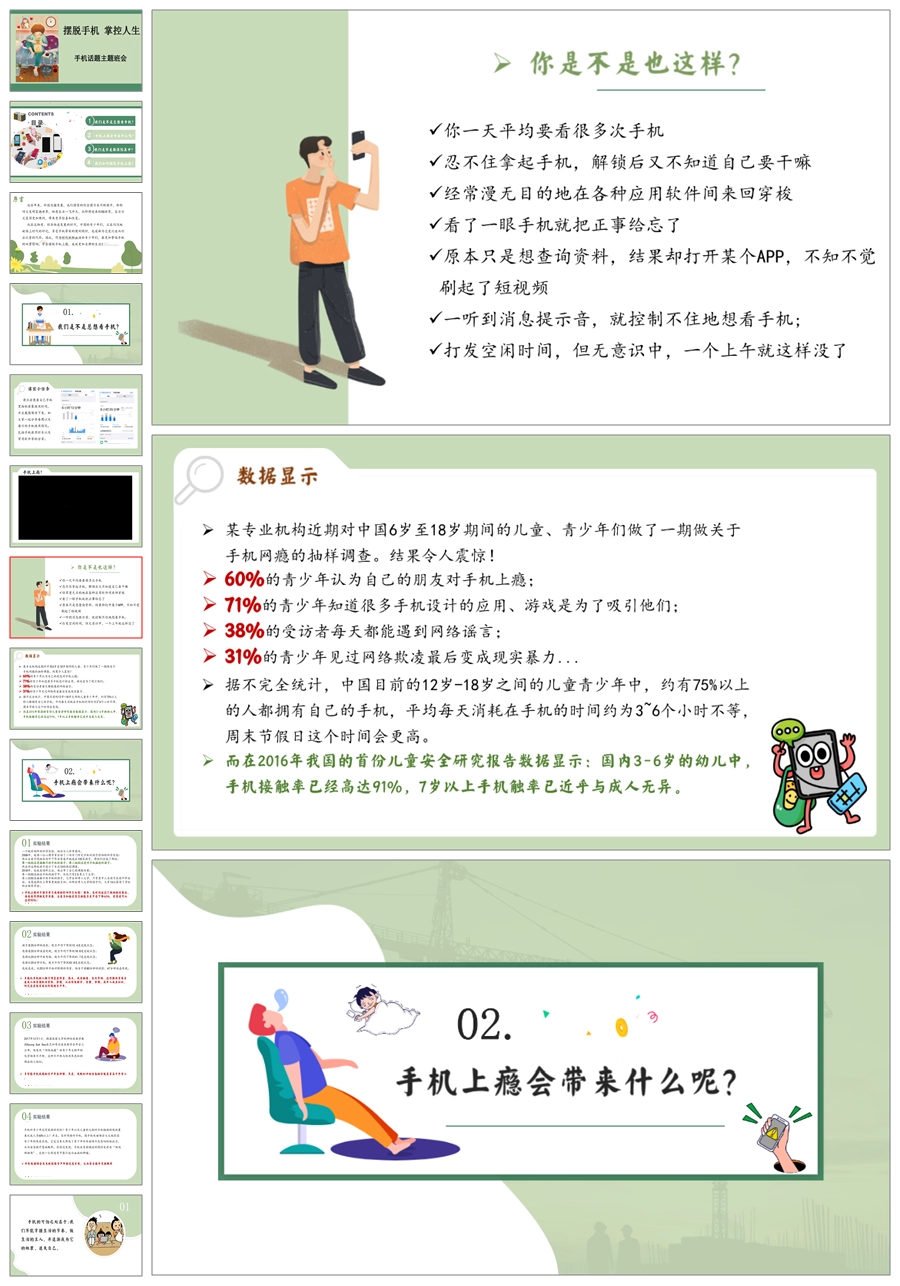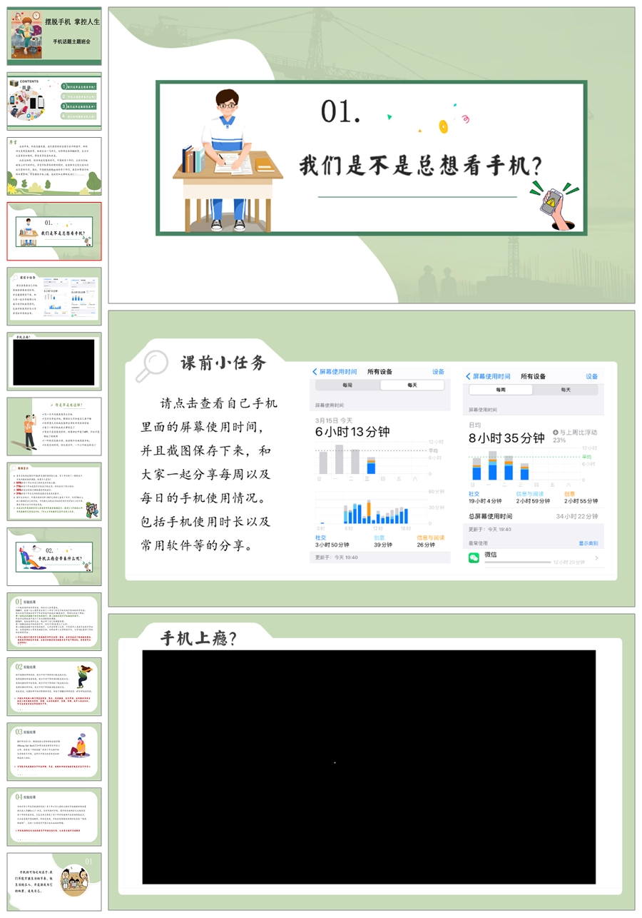 【8212】【手机话题】《摆脱手机掌控人生》合理使用手机主题班会PPT(课件+教案+视频)
