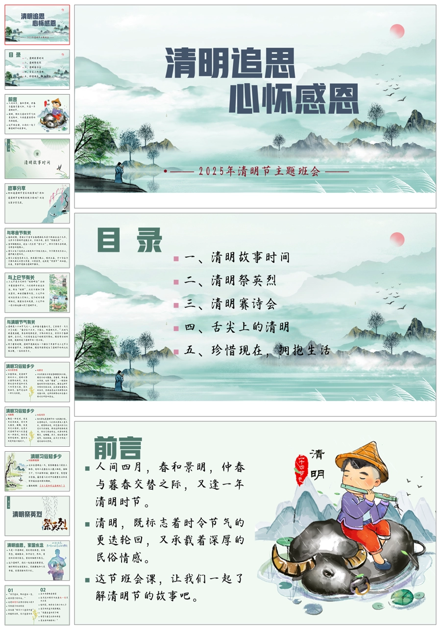 【8308】【清明节班会】《清明追思心怀感恩》2025年清明节主题班会PPT(课件+教案+视频)