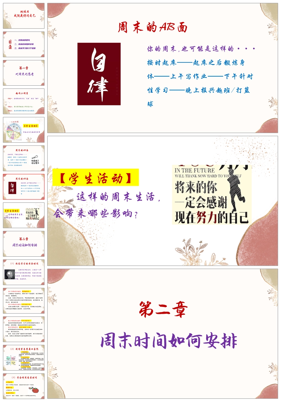 【8311】【双休班会】《双休日,成就更好的自己》双休主题班会PPT(课件+逐字稿)