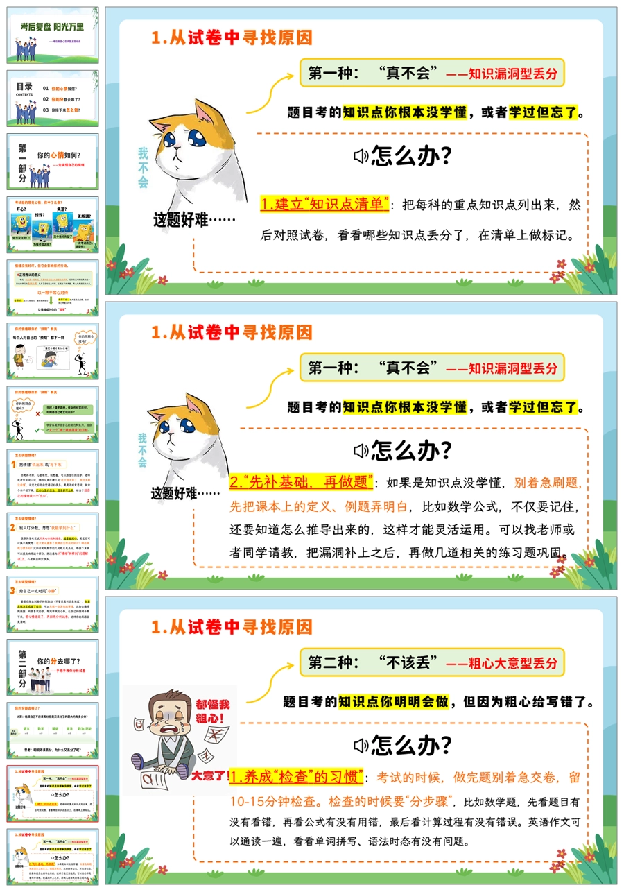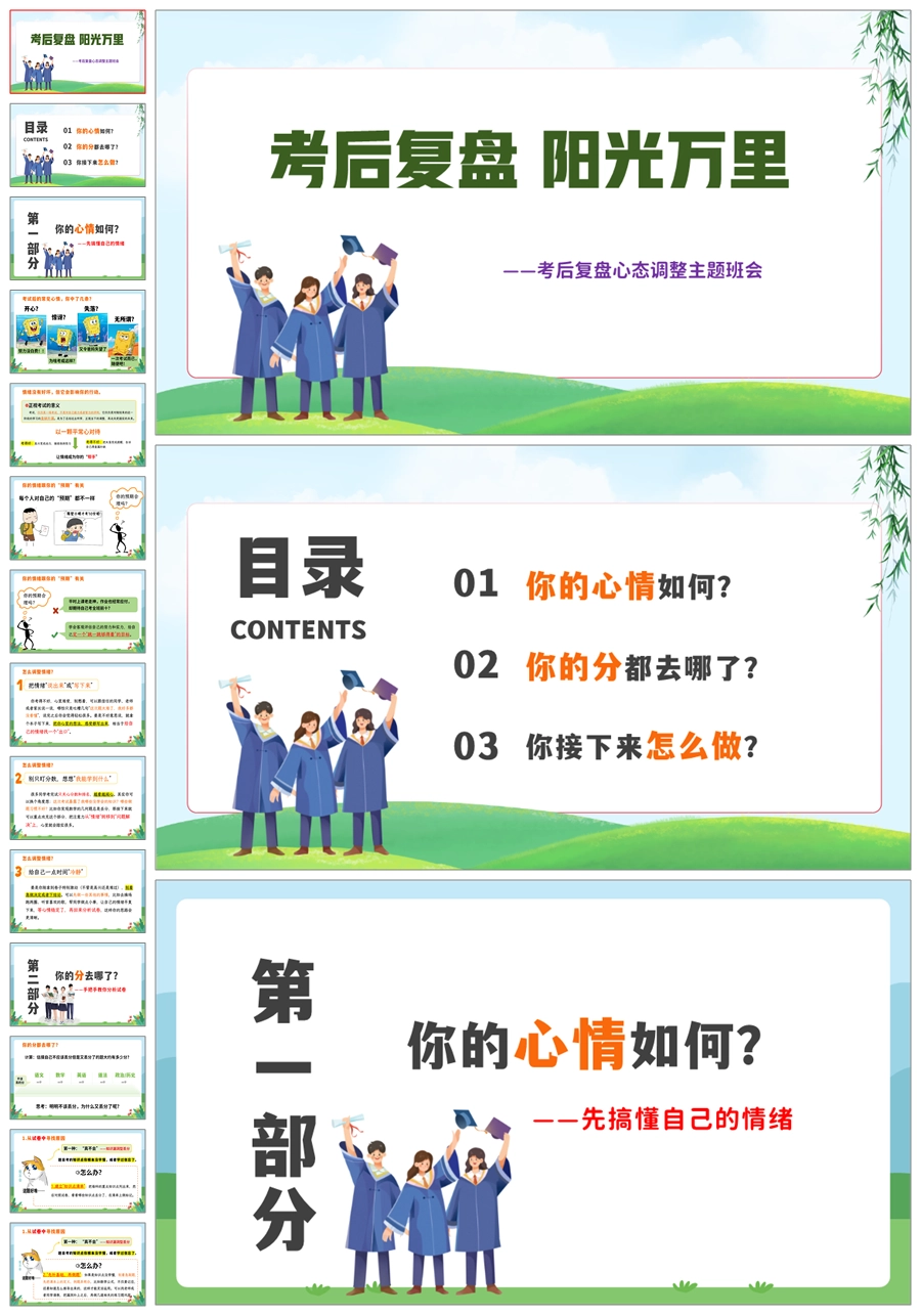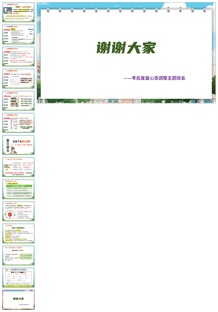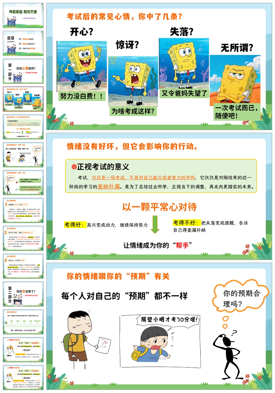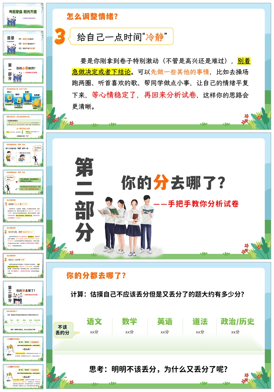 【8320】【考后总结】《考后复盘阳光万里》考后复盘心态调整主题班会PPT(课件+教案+反思清单)