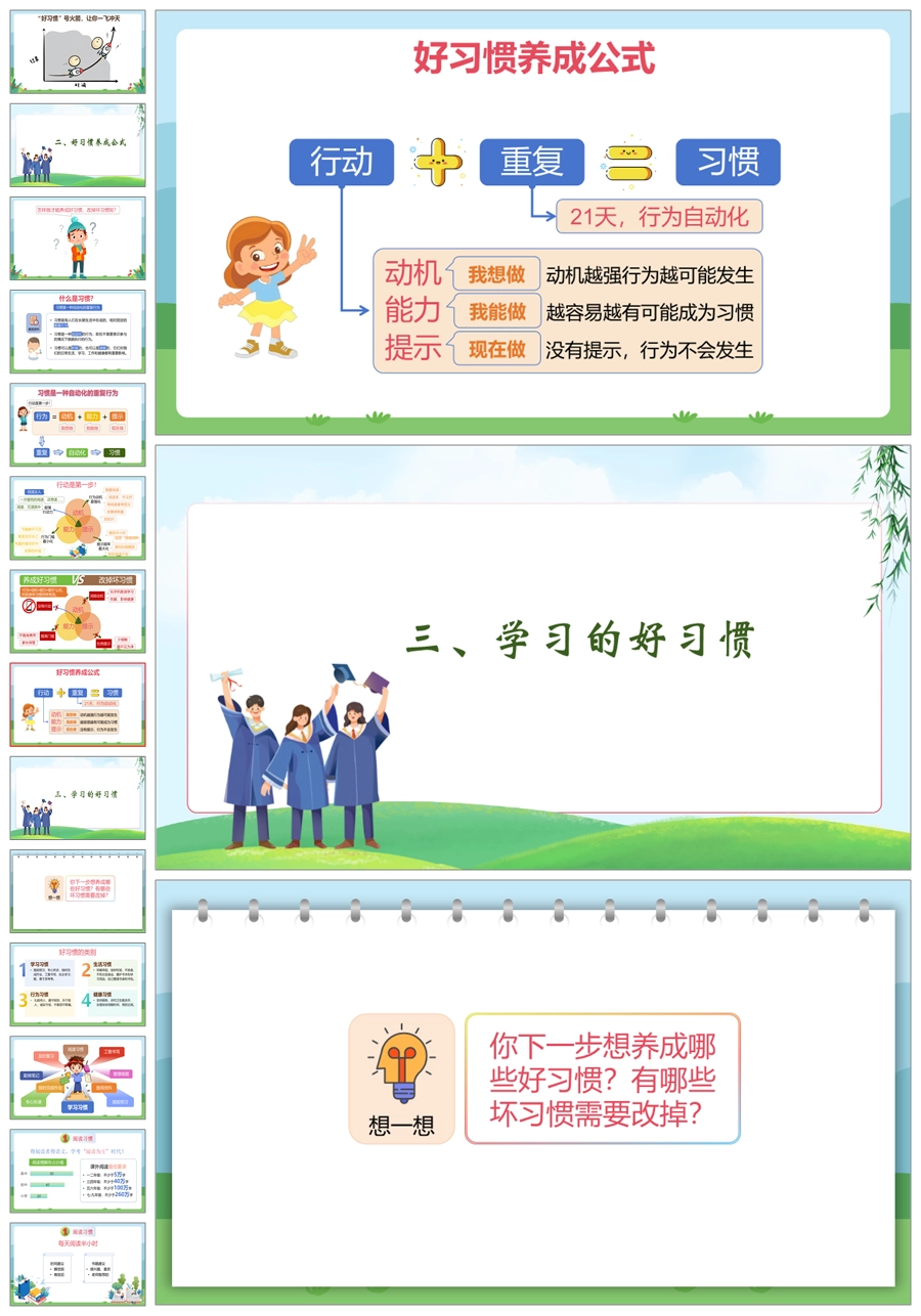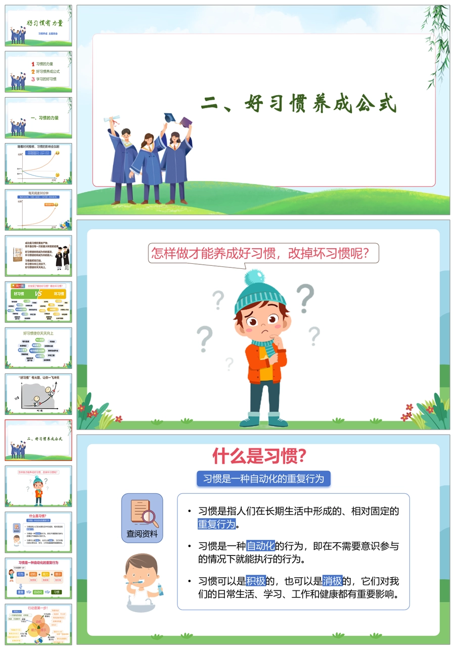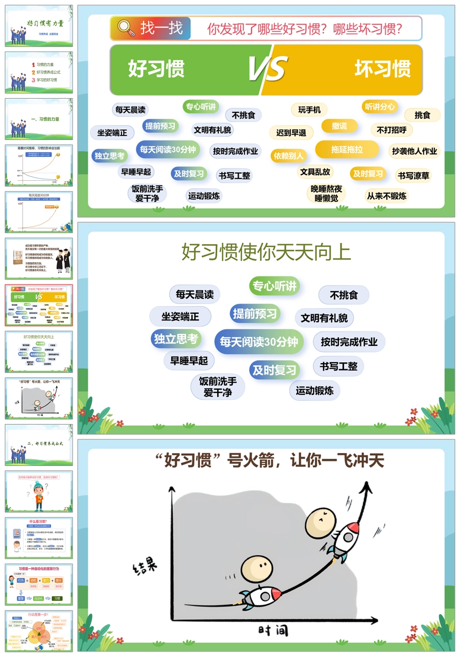 【8321】【习惯养成】《好习惯有力量》养成好习惯主题班会PPT(课件+教案)