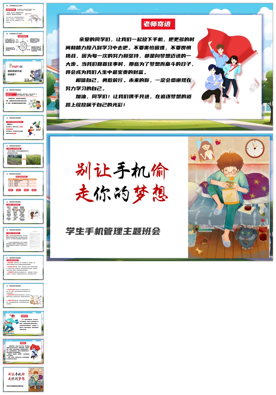 【8331】【手机管理】《别让手机偷走你的梦想》拒绝沉迷手机主题班会PPT(课件+教案+视频)