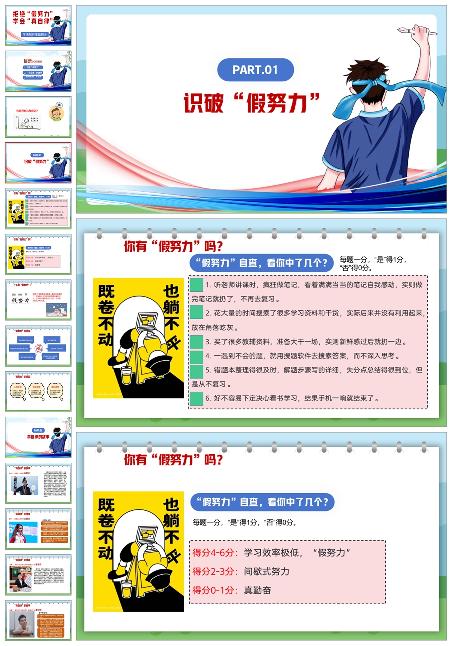 【8336】【学习指导】《拒绝假努力学会真自律》拒绝假努力主题班会PPT(课件+发言稿+视频)
