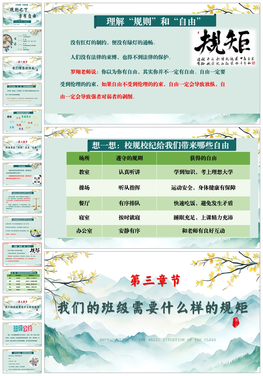 【8558】《规则之下方有自由》班级公约班级纪律学生纪律意识主题班会ppt+逐字稿