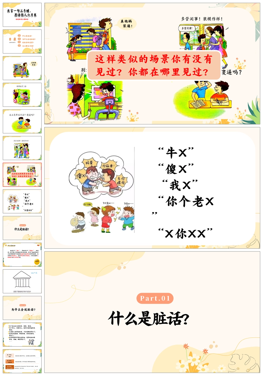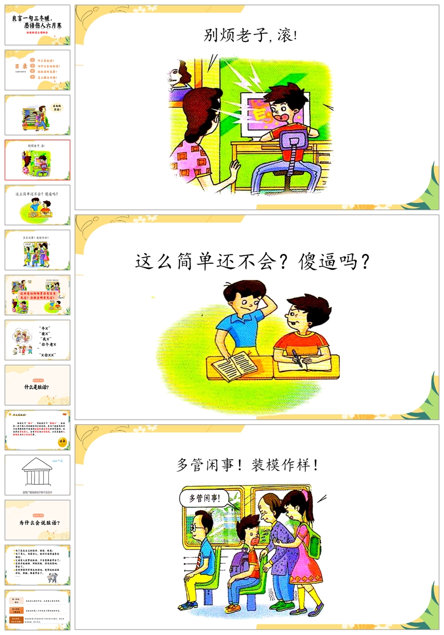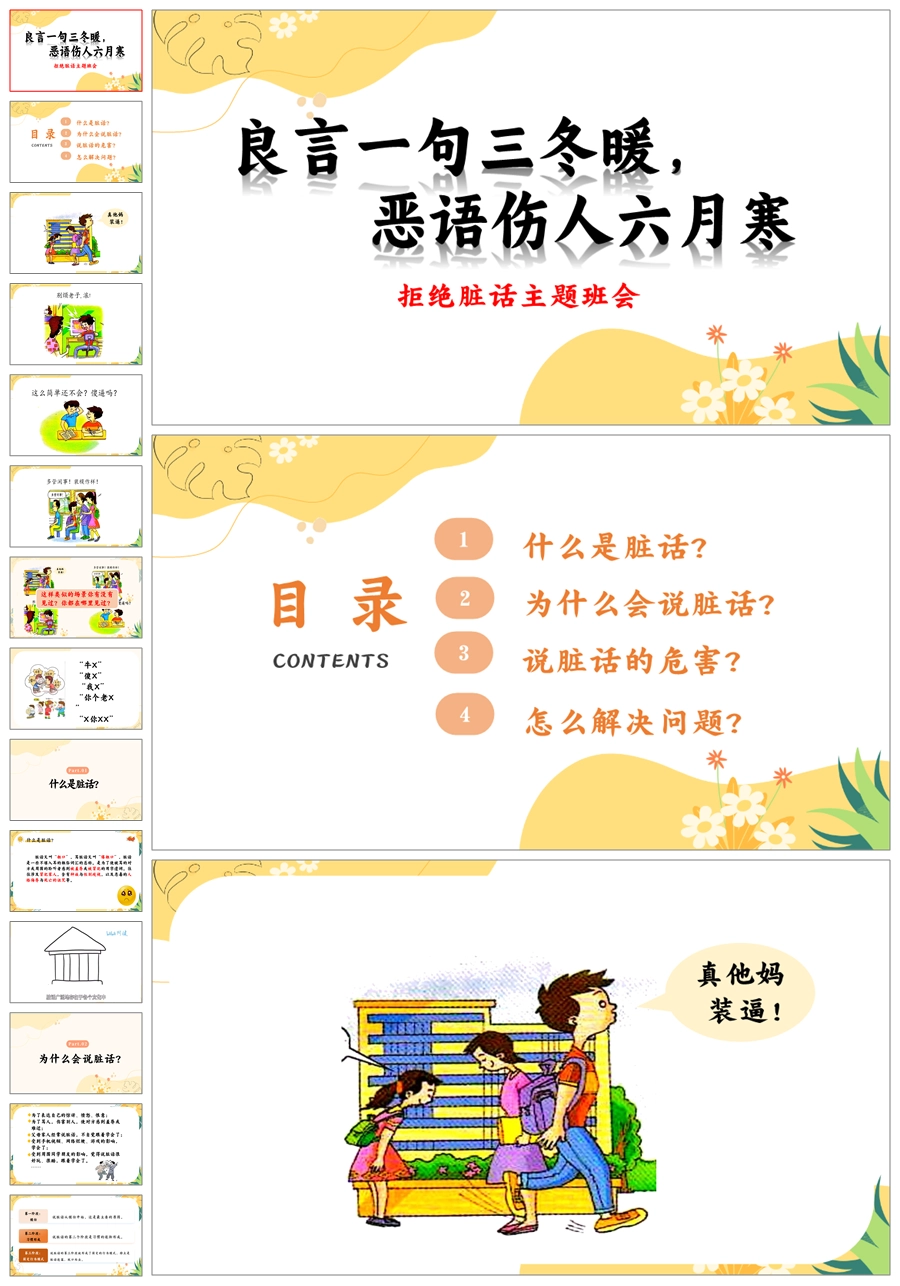 【8560】《良言一句三冬暖恶语伤人六月寒》拒绝脏话文明用语主题班会ppt课件+教案