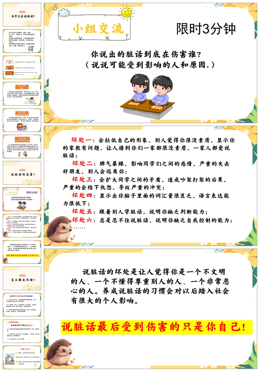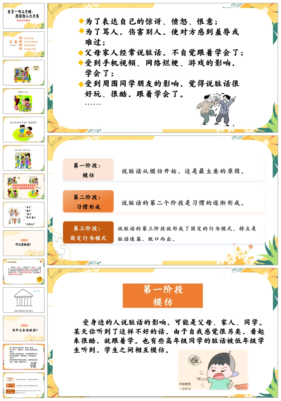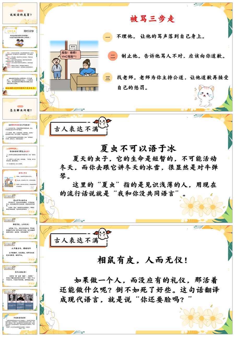 【8560】《良言一句三冬暖恶语伤人六月寒》拒绝脏话文明用语主题班会ppt课件+教案
