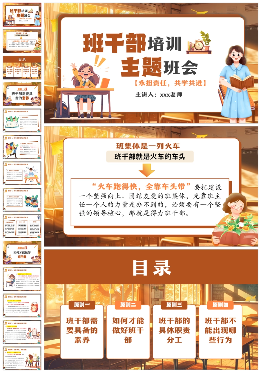 【8565】《永担责任共学共进》班干部培训主题班会ppt课件+逐字稿