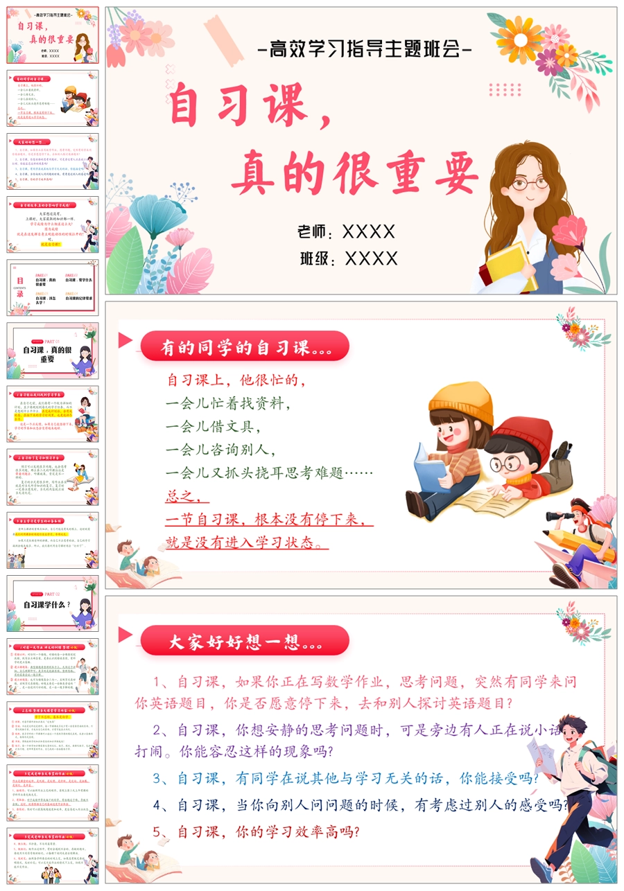 【8567】《自习课真的很重要》学习指导主题班会ppt课件+逐字稿1