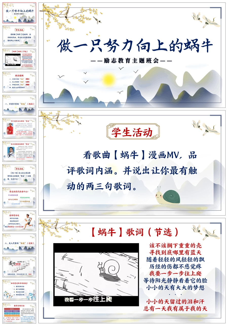【8571】《做一只努力向上的蜗牛》励志主题班会ppt课件+教案1