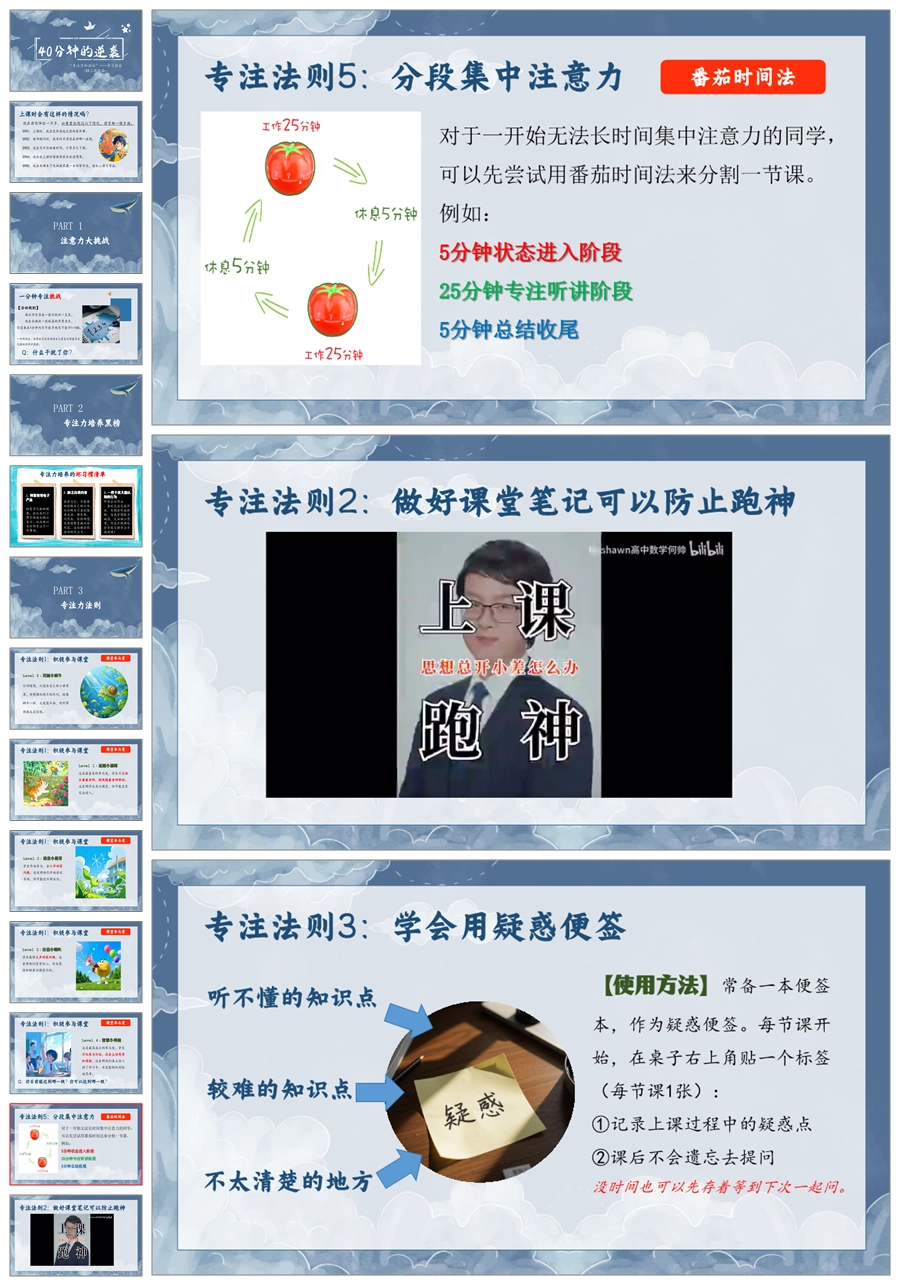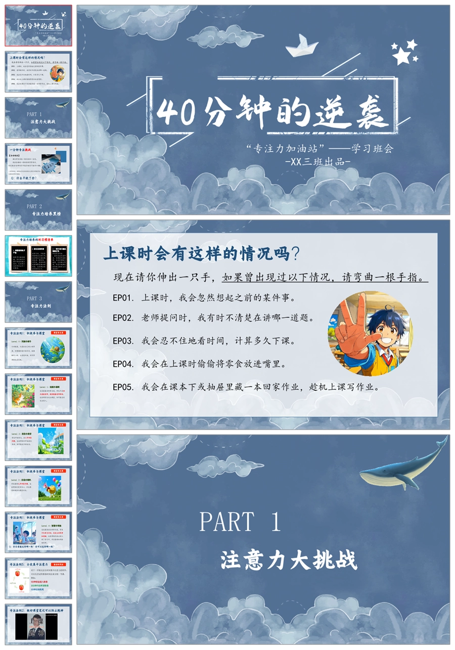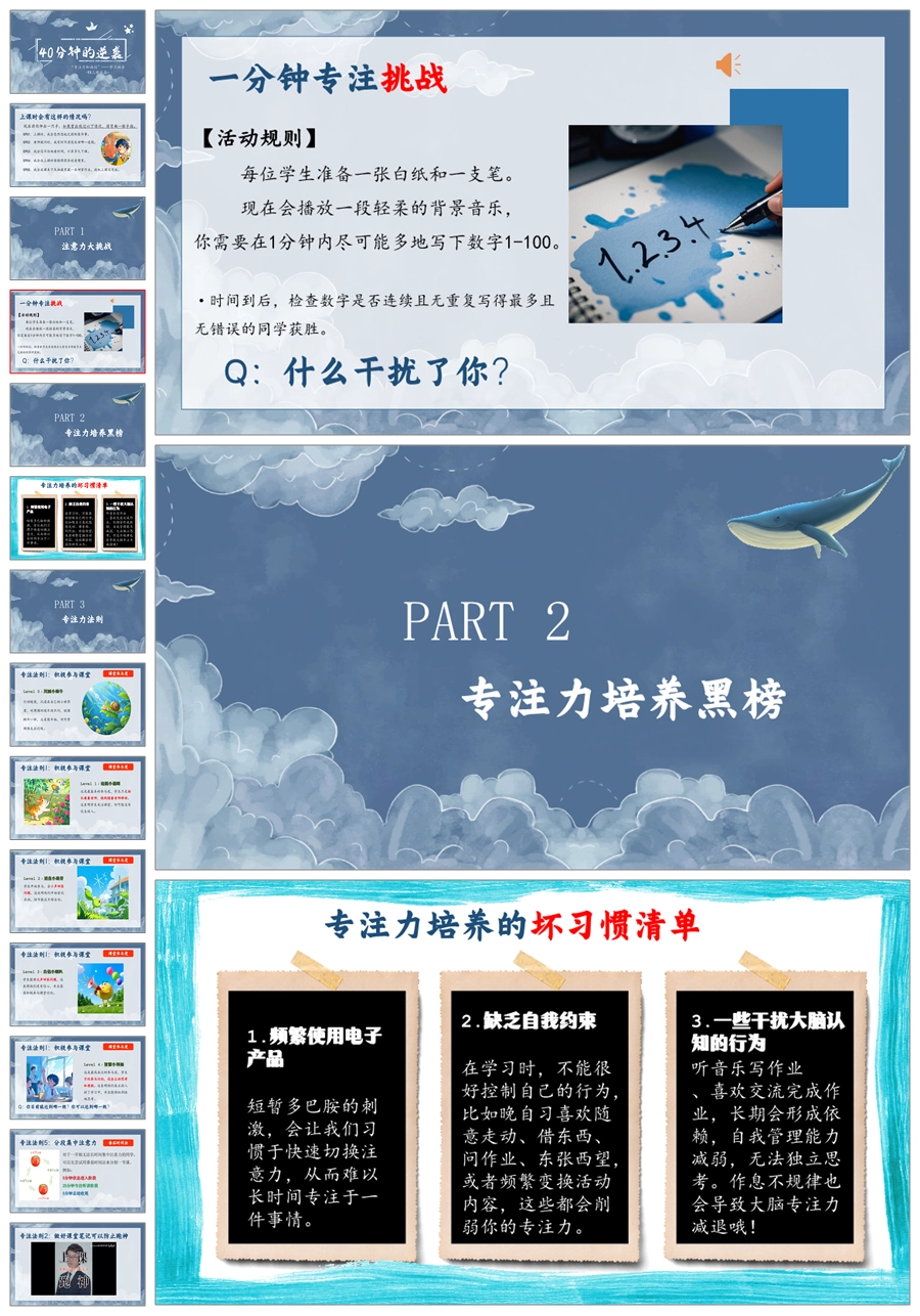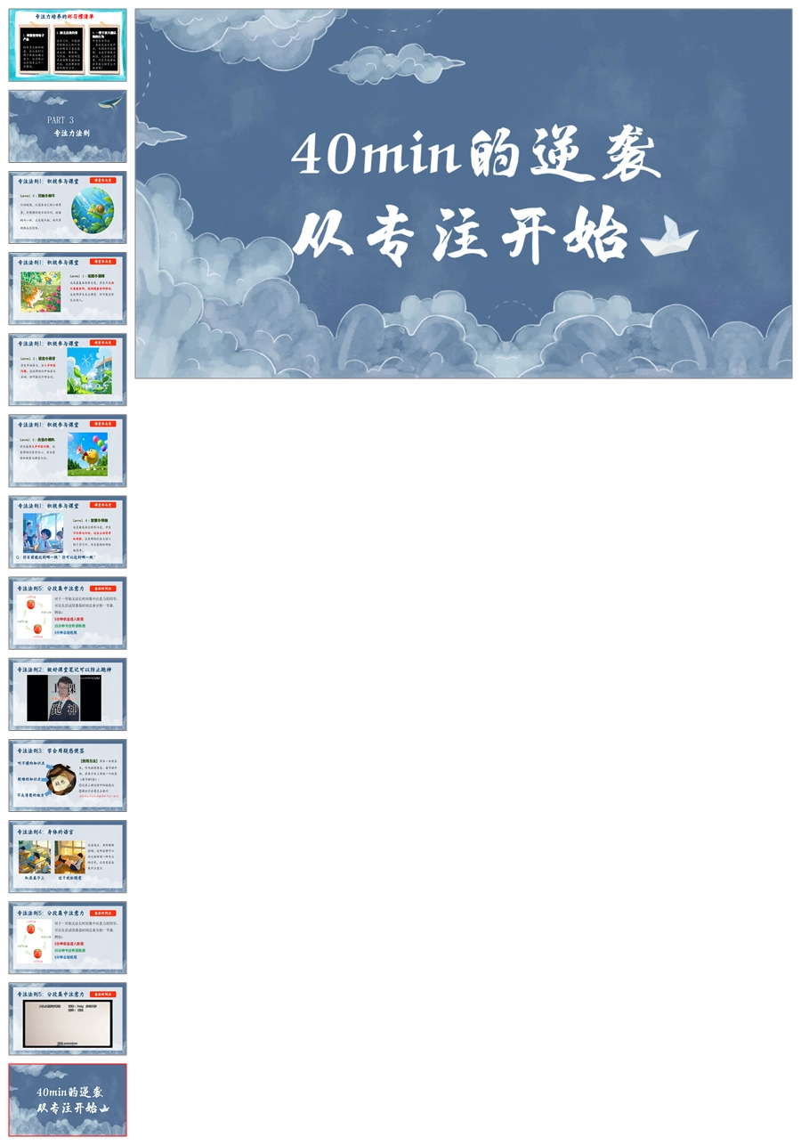 【8580】《40分钟的逆袭》专注力培养学习主题班会ppt课件+教案