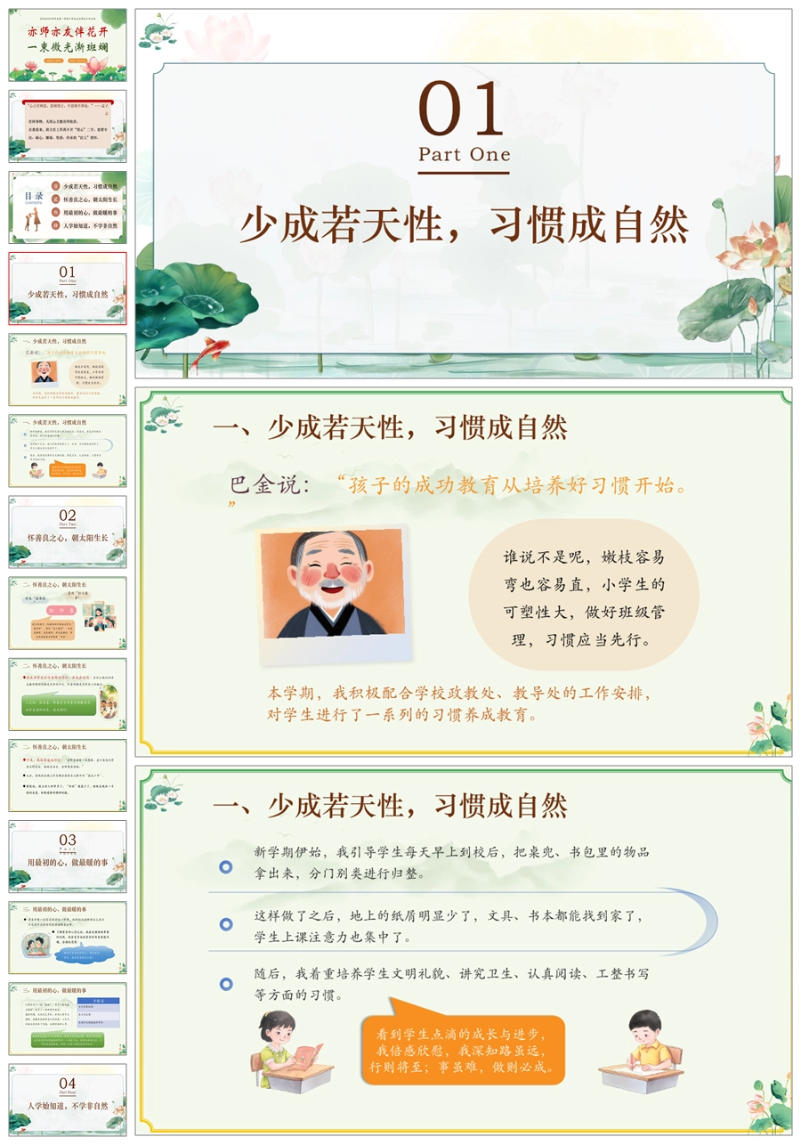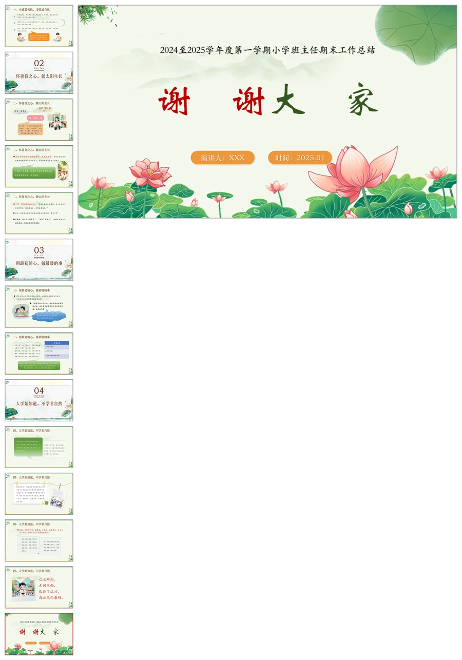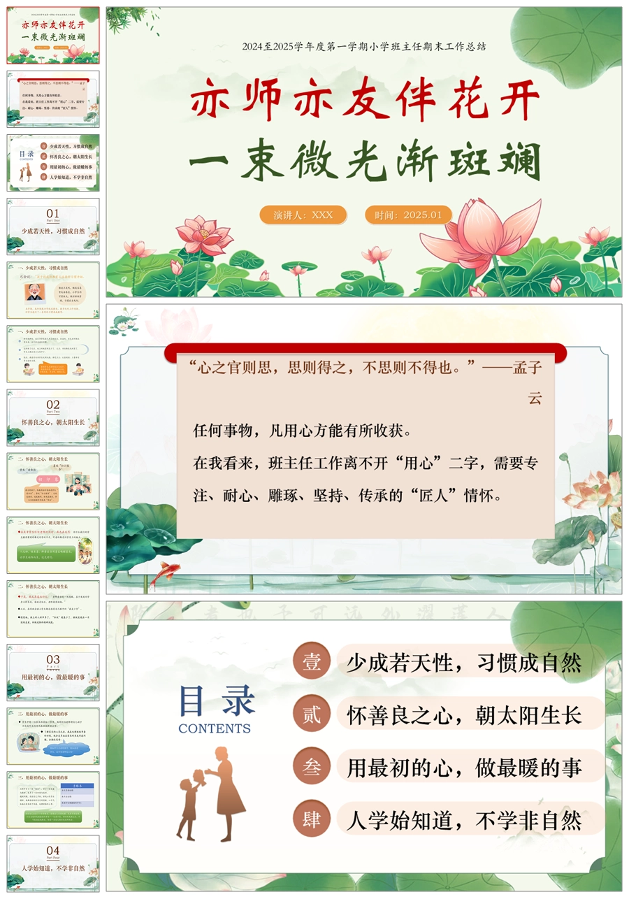 【8244】【工作总结】《亦师亦友伴花开一束微光渐斑斓》小学班主任期末工作总结PPT(课件+发言稿)