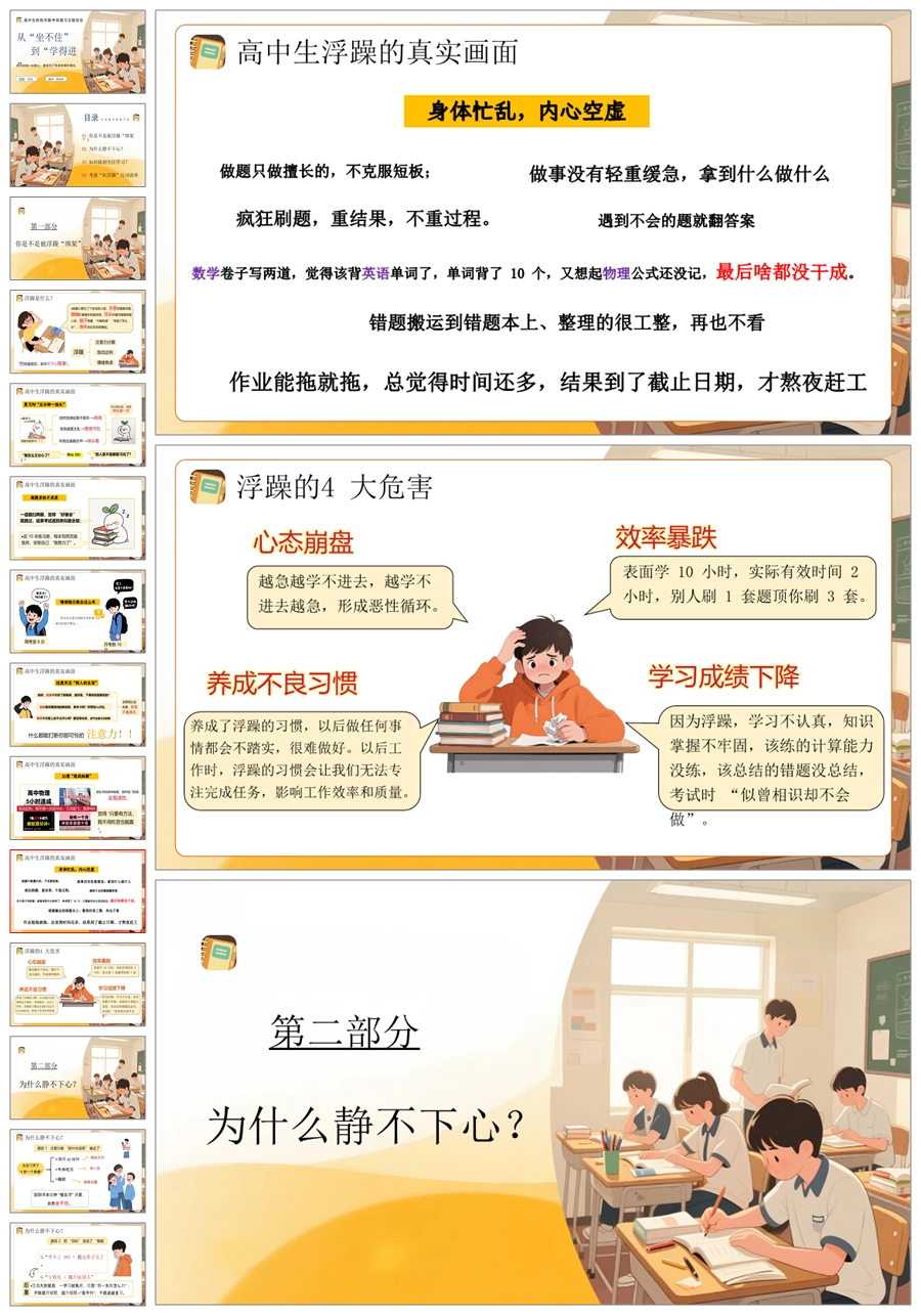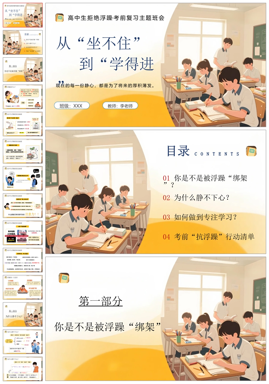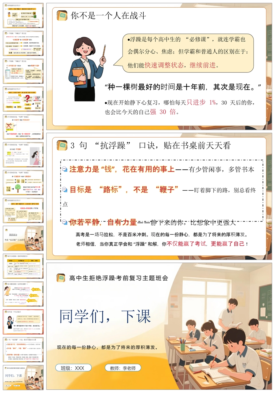 【5048】高中考前复习指导班会《高中生拒绝浮躁》考前复习主题班会PPT课件+教案