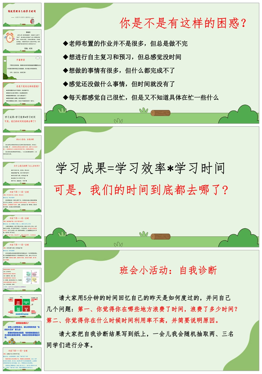 【8067】【时间管理】《高效管理自己的学习时间》管理时间高效学习主题班会PPT课件