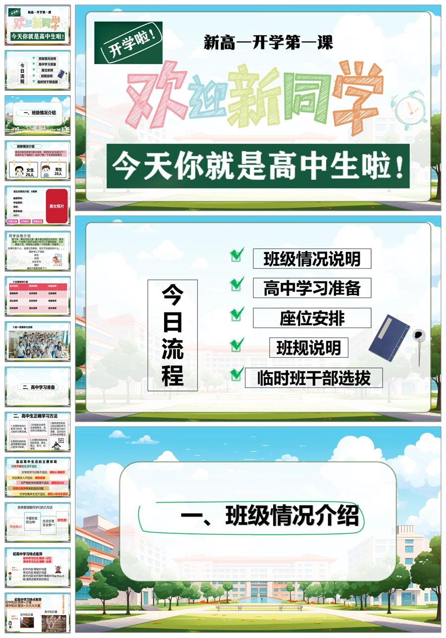 【8504】《今天你是高中生》新高一开学第一课主题班会ppt课件+发言稿2