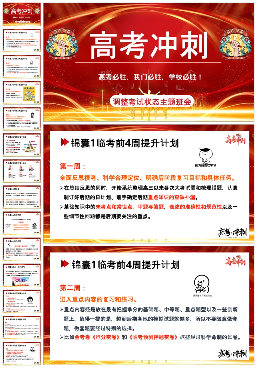 【8350】【高考锦囊】高考提醒高考冲刺高考锦囊高考心态调整主题班会PPT(课件+视频+逐字稿)