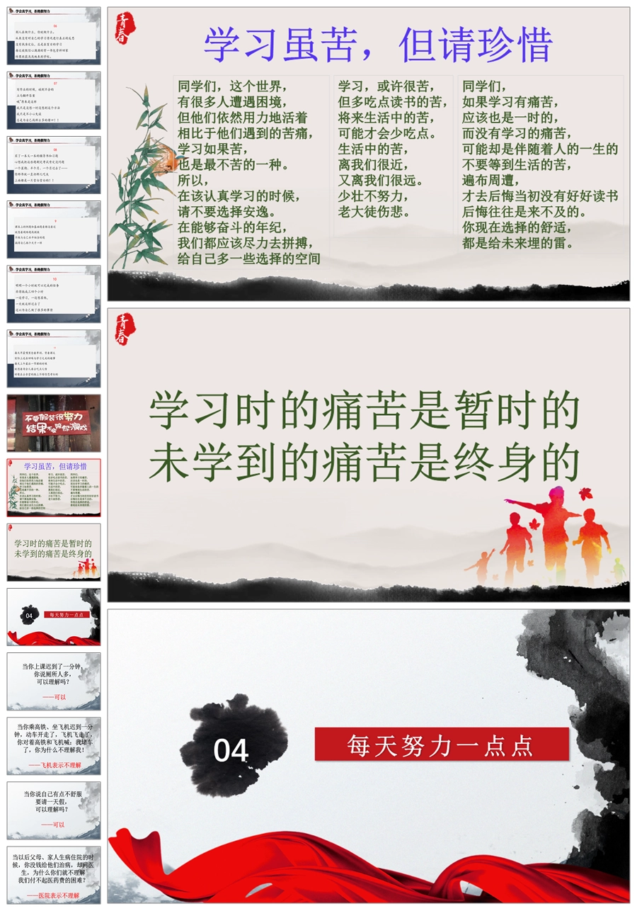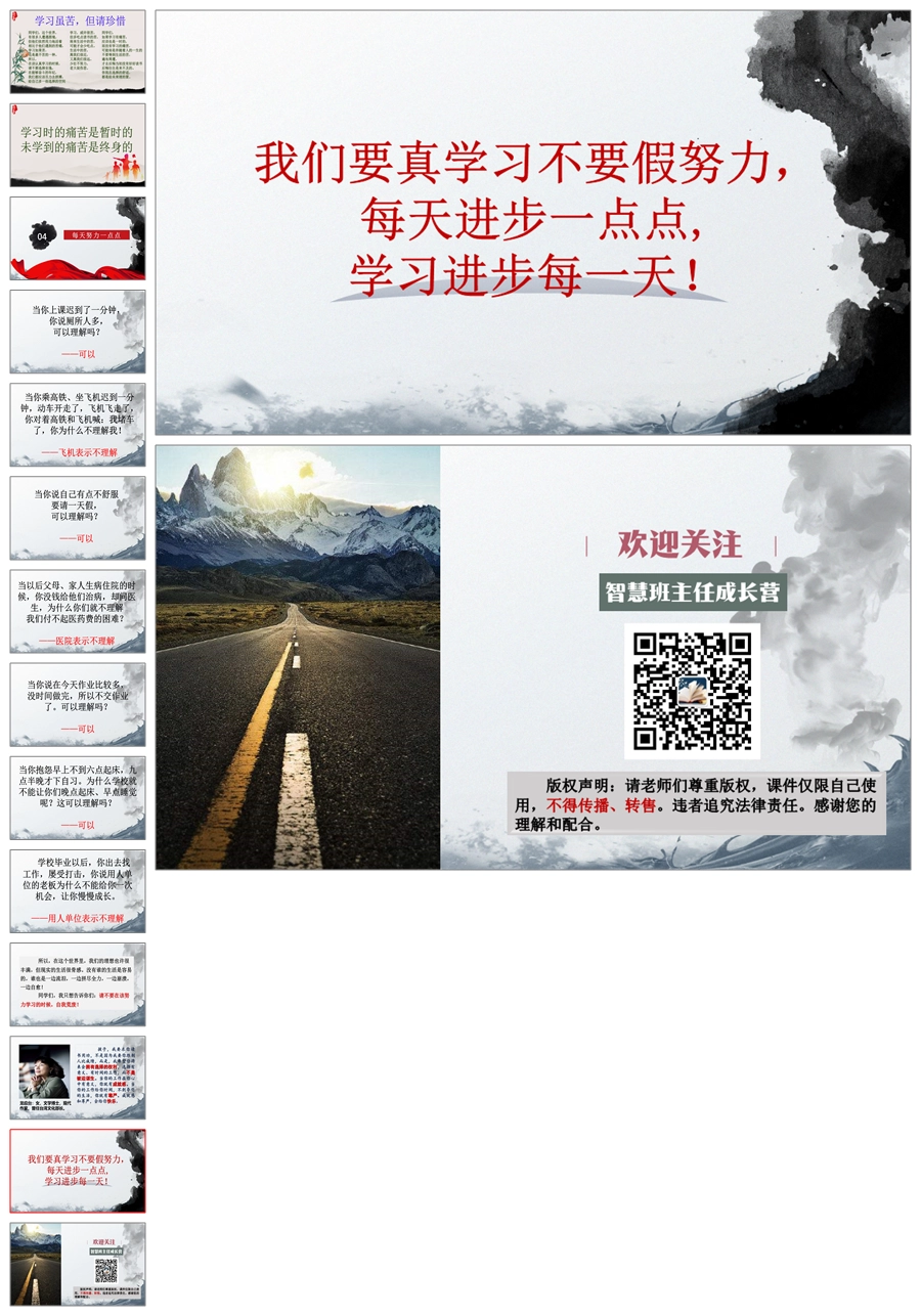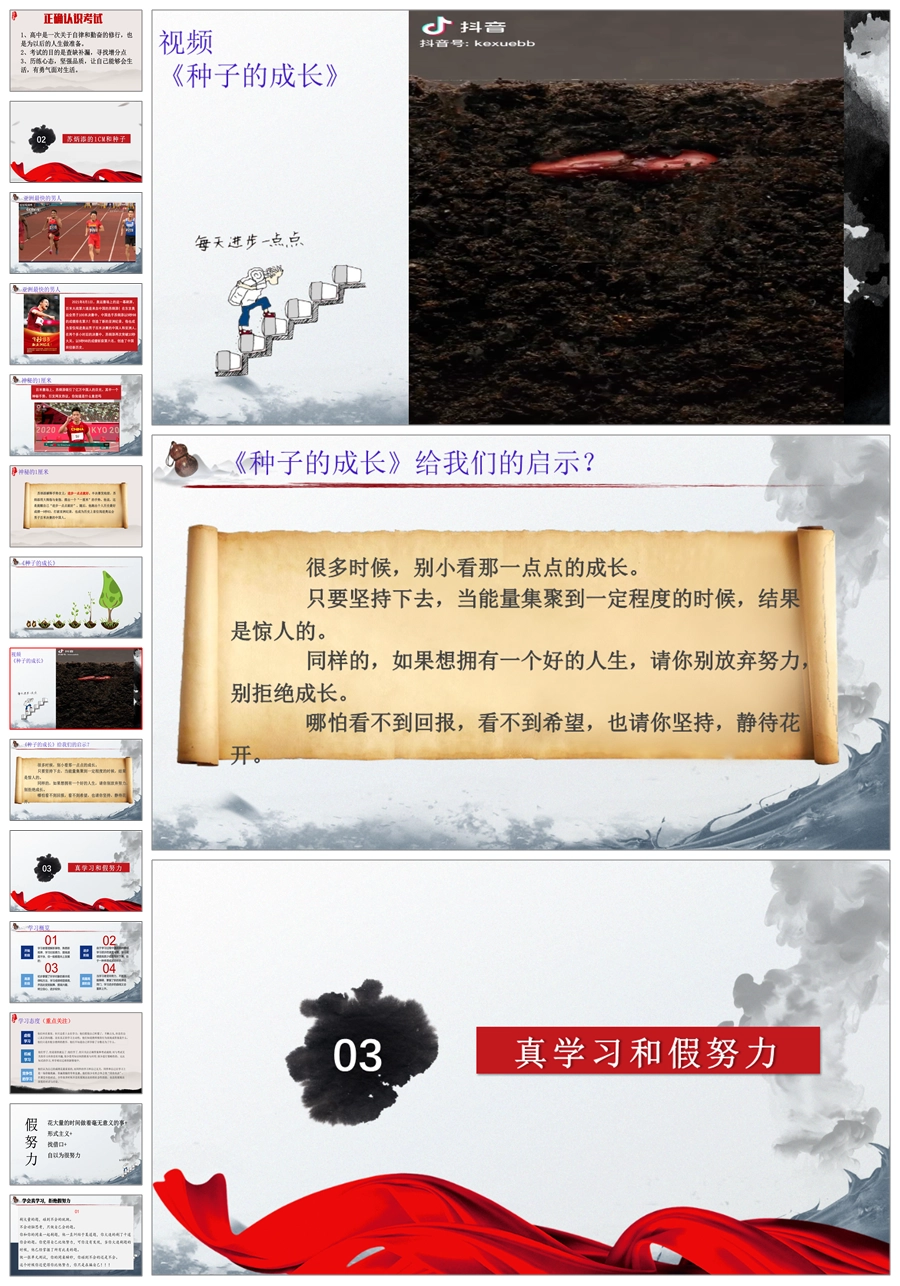 【5583】《自习的静成长的劲》竹子定律班会励志主题班会PPT课件+发言稿