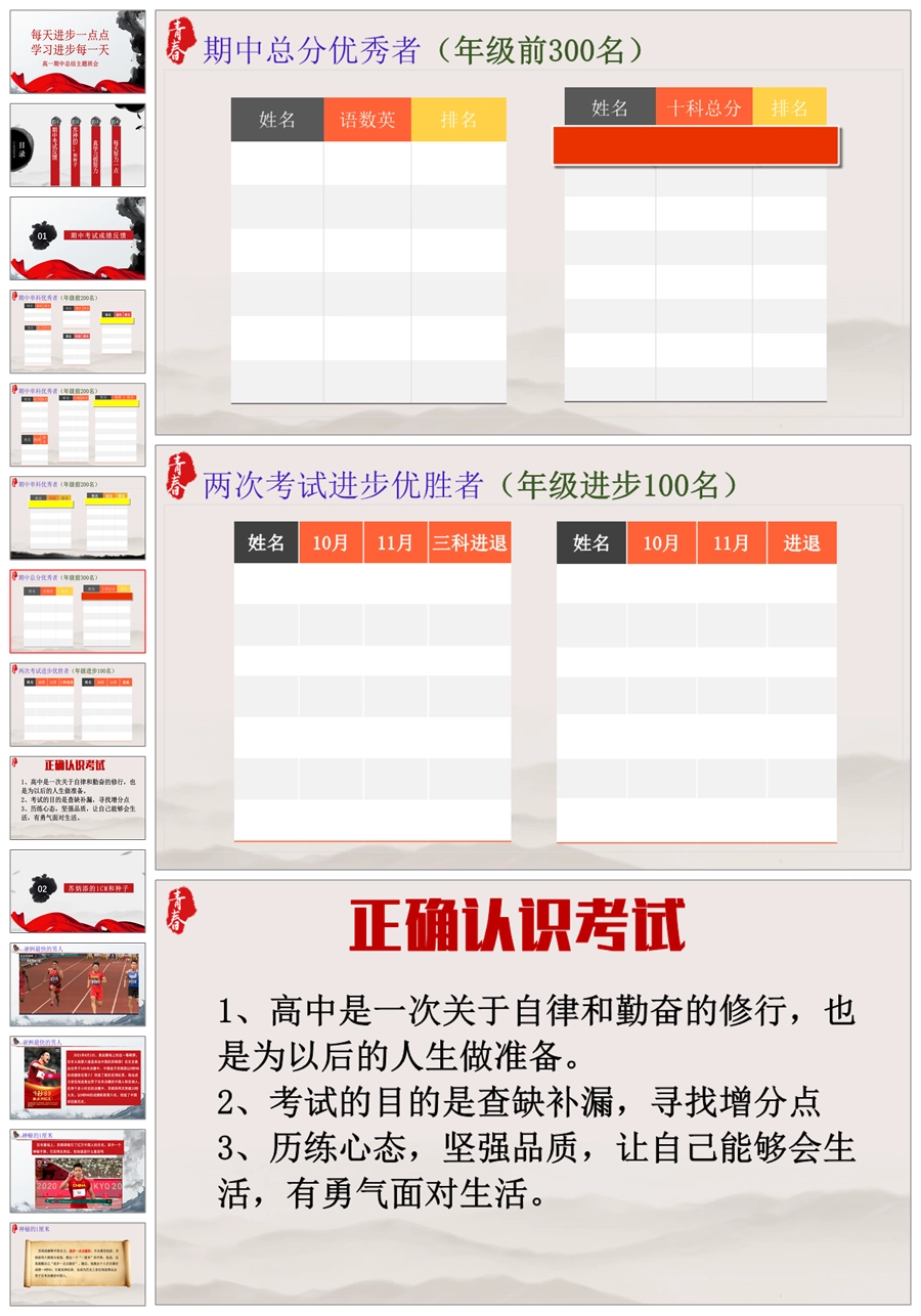 【8354】【期中总结】《每天进步一点点学习进步每一天》高一期中总结主题班会PPT(课件+发言稿)