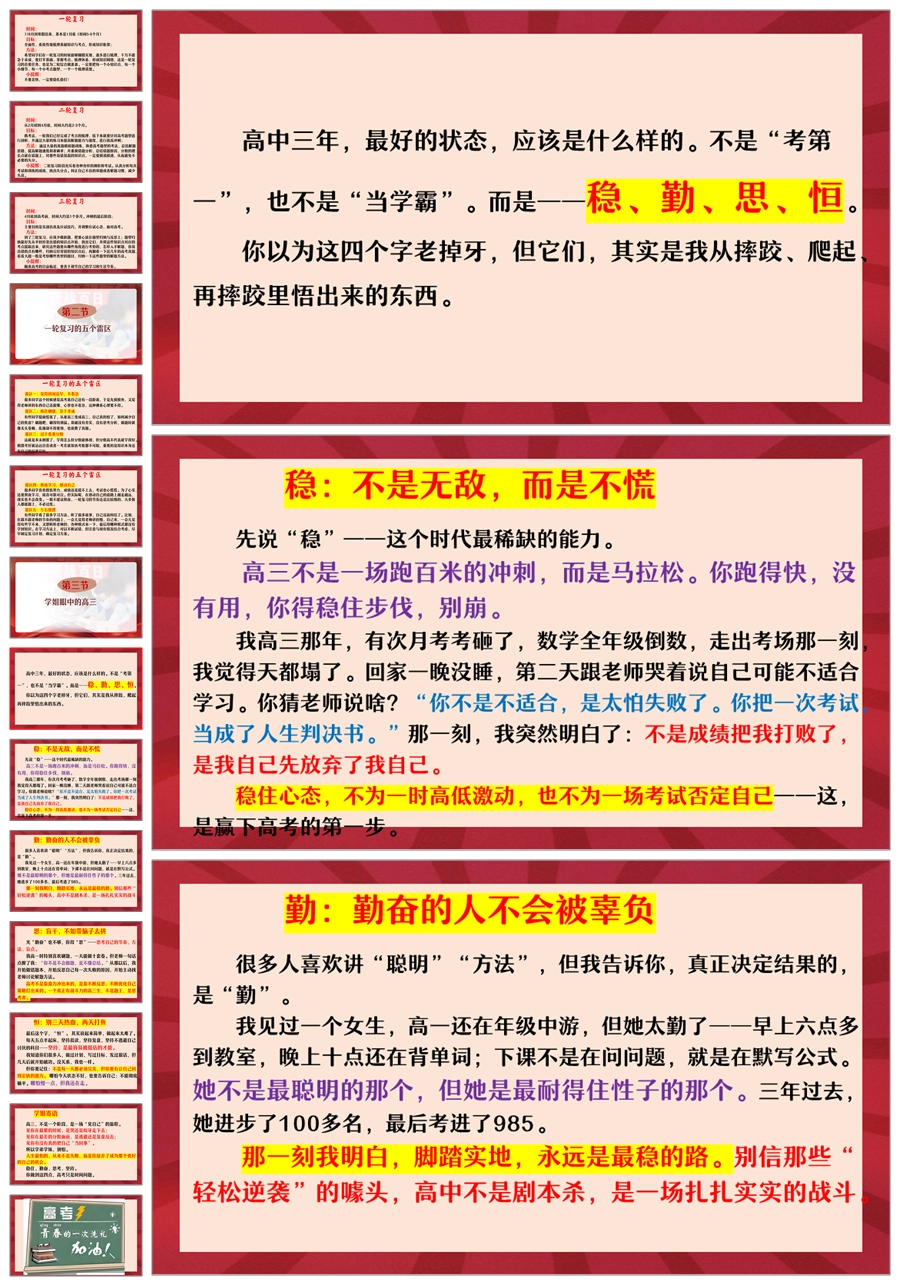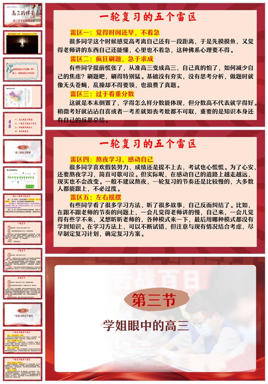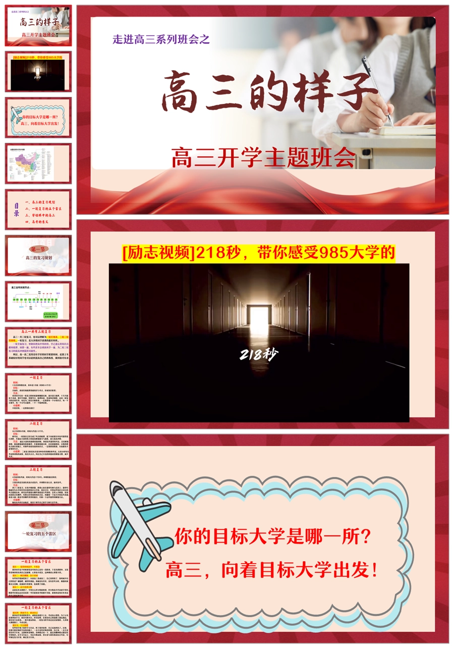 【8461】【高二升高三】《走进高三,高三的样子》高三开学主题班会ppt课件+讲话稿