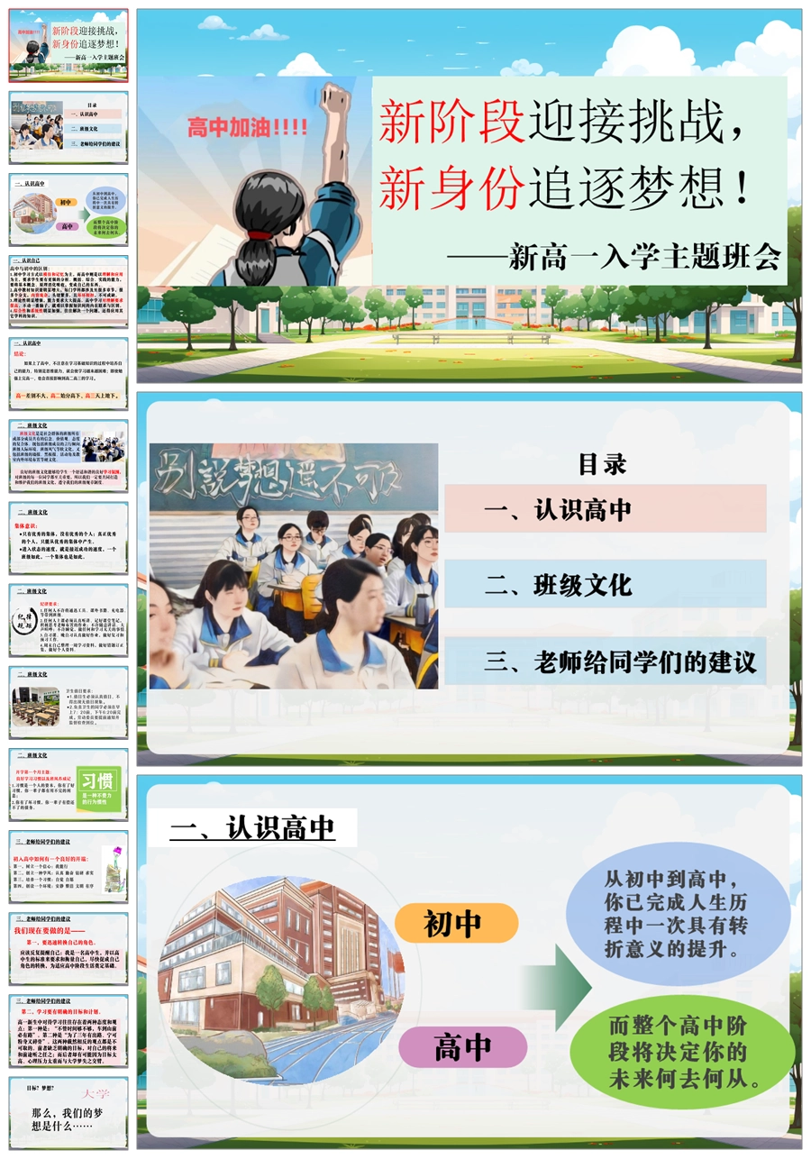 【8506】《新阶段迎接挑战》高一新生入学班会课开学第一课ppt课件+发言稿(共43张ppt)
