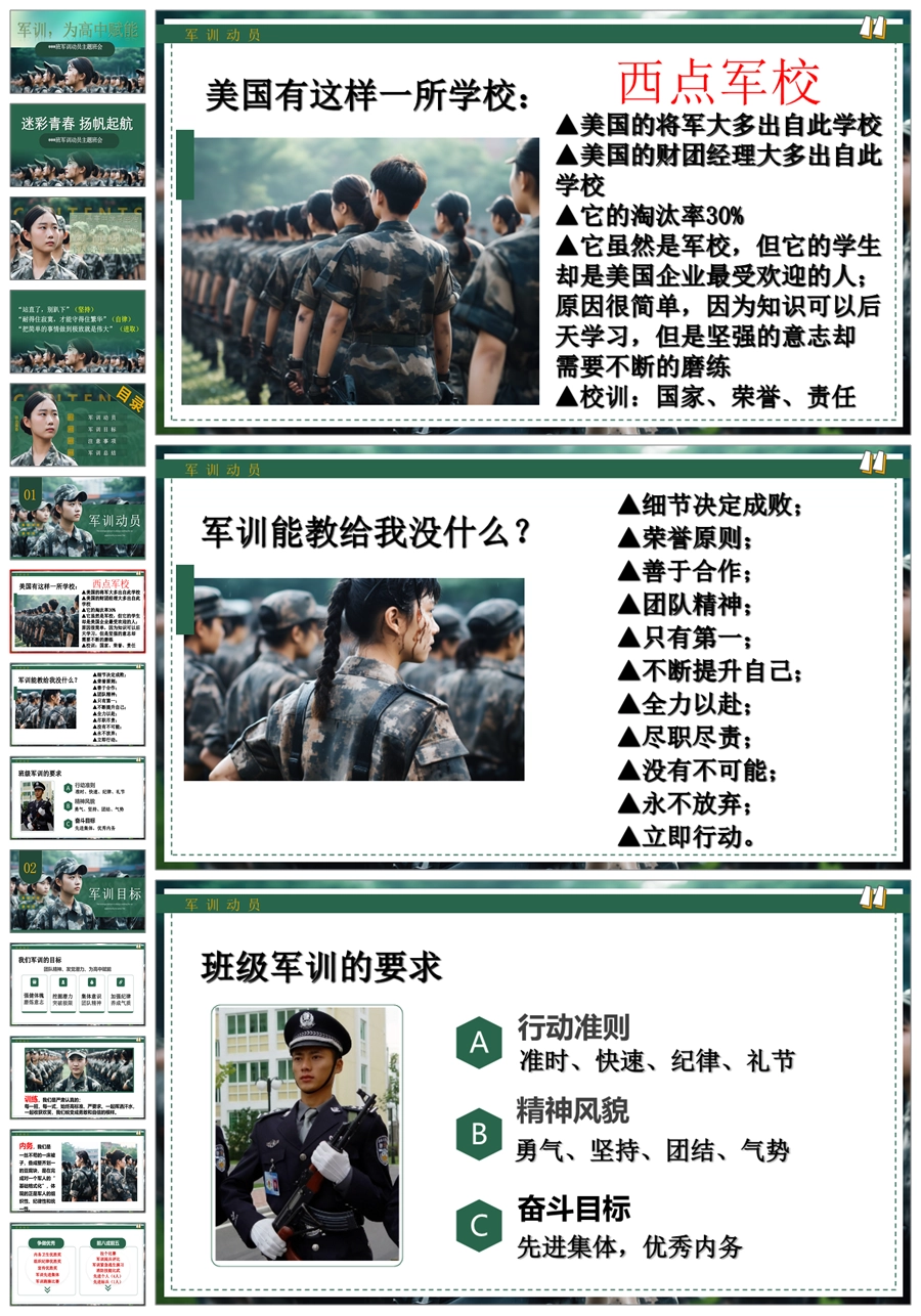 【8514】【军训动员】《迷彩青春 扬帆起航》高一新生军训动员主题班会PPT课件+发言稿