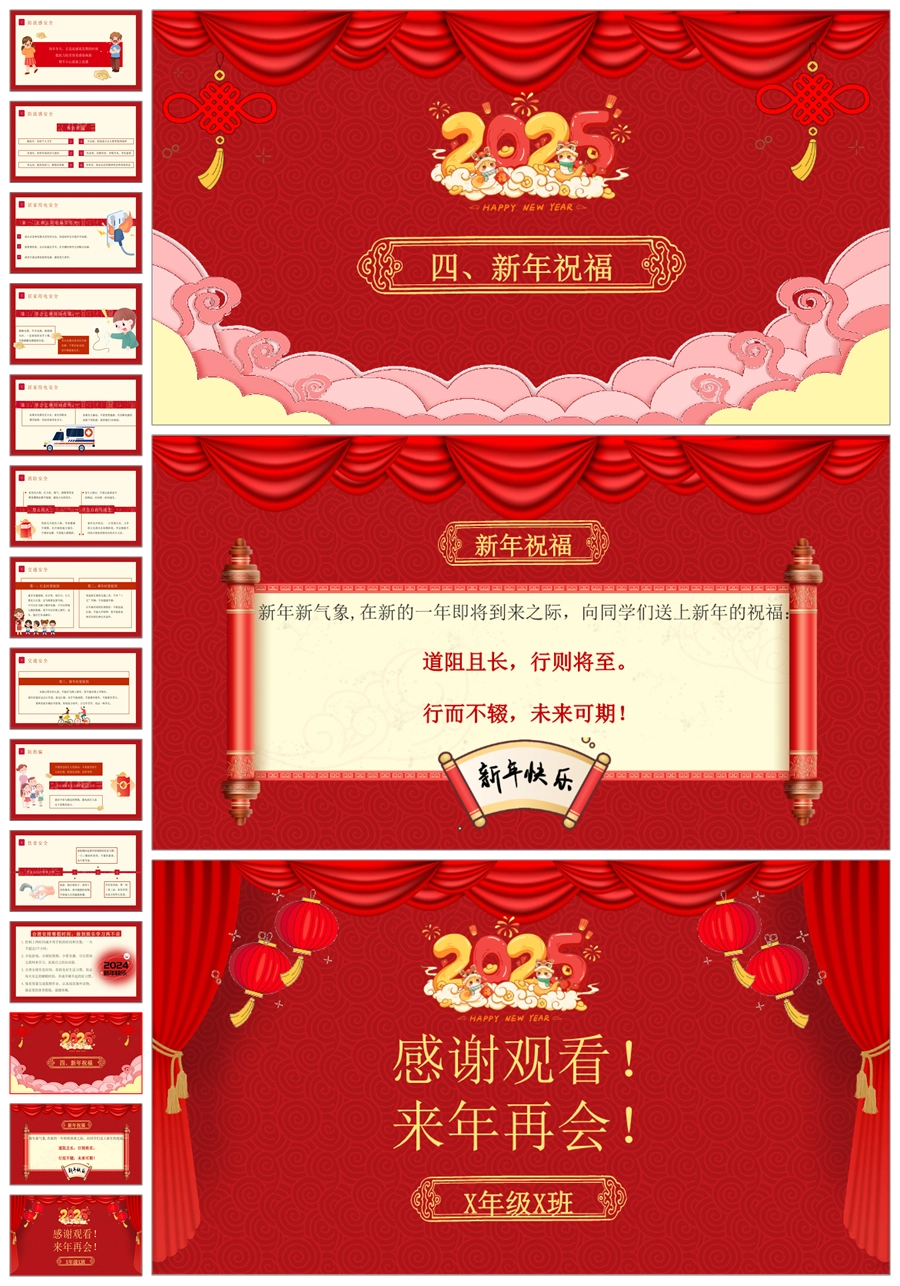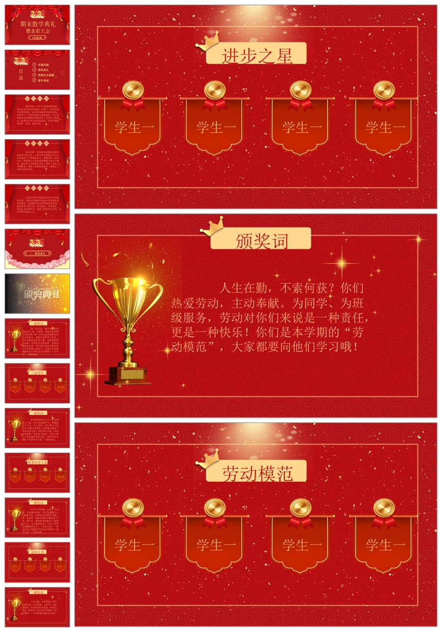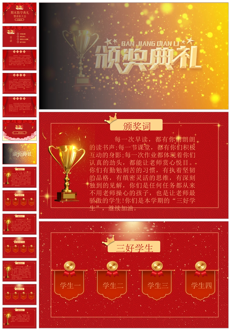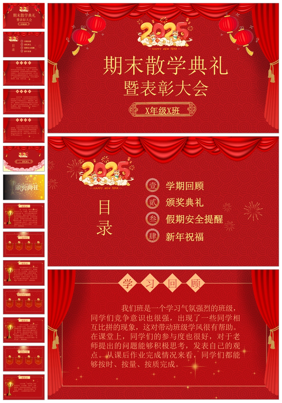 【8214】【小学散学典礼】小学期末散学典礼红色版PPT课件PPT(课件+讲稿)