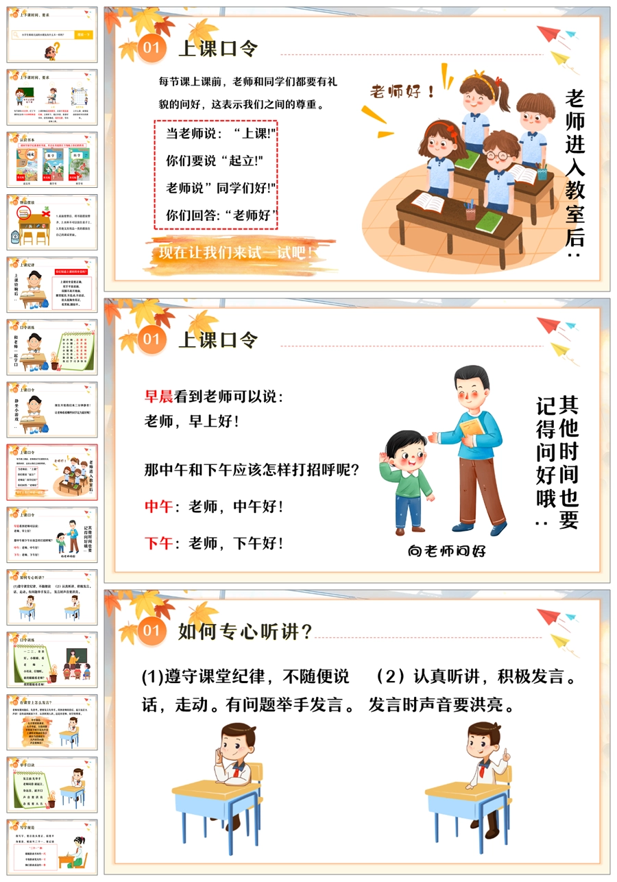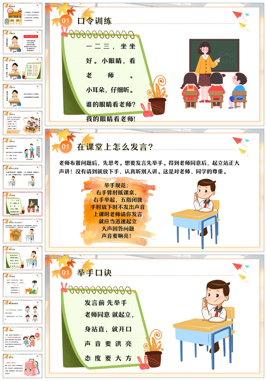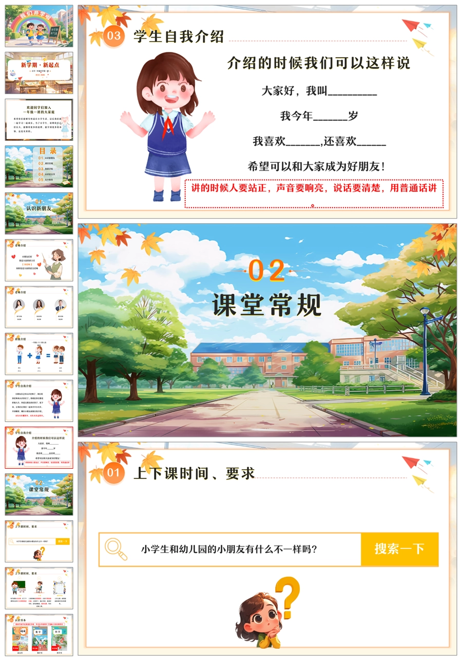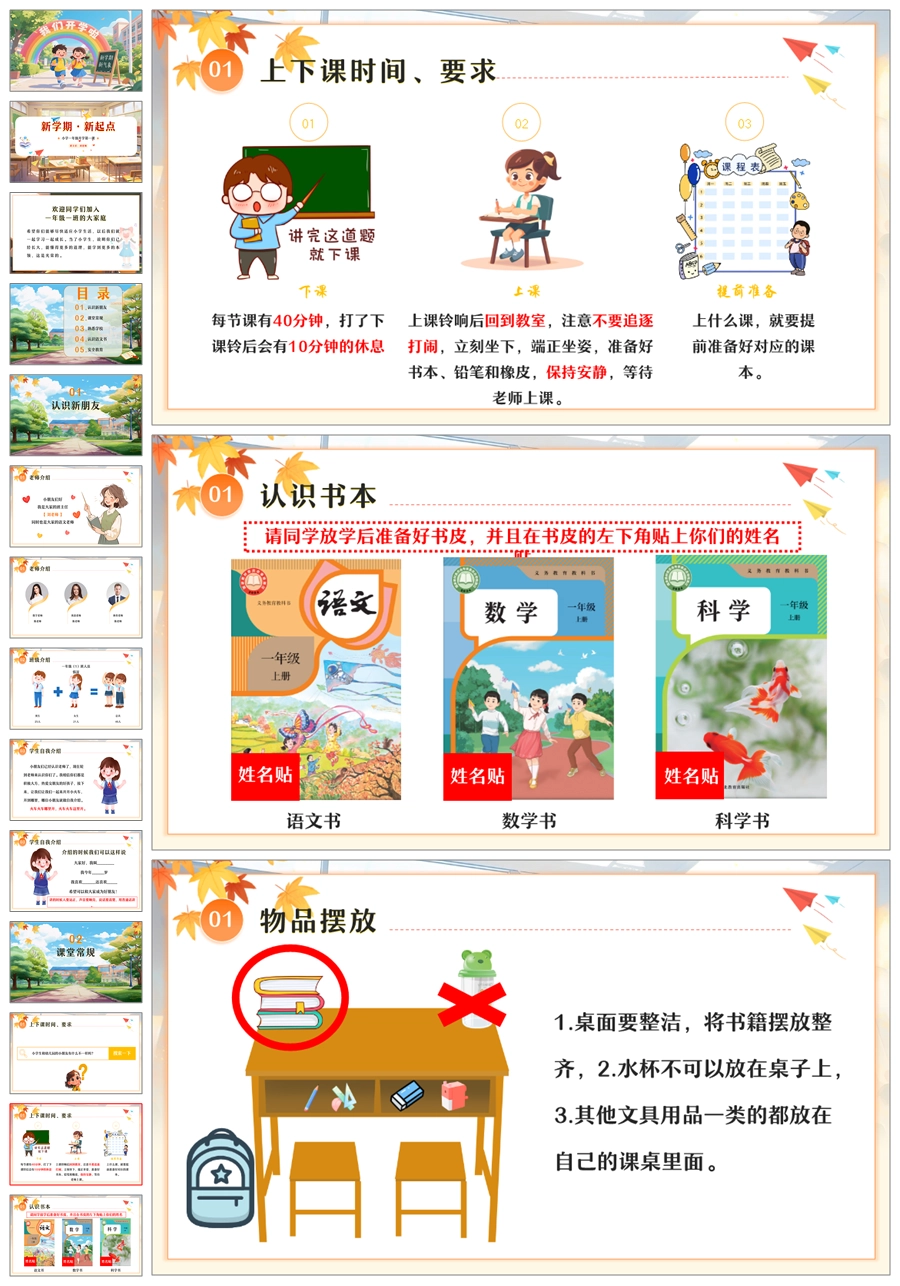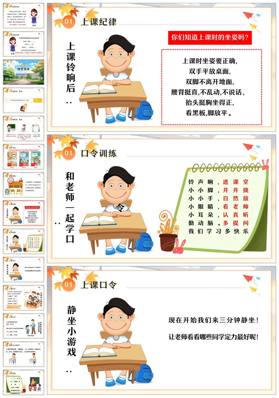 【8515】小学一年级开学第一课小学新生入学常规教育ppt+逐字稿