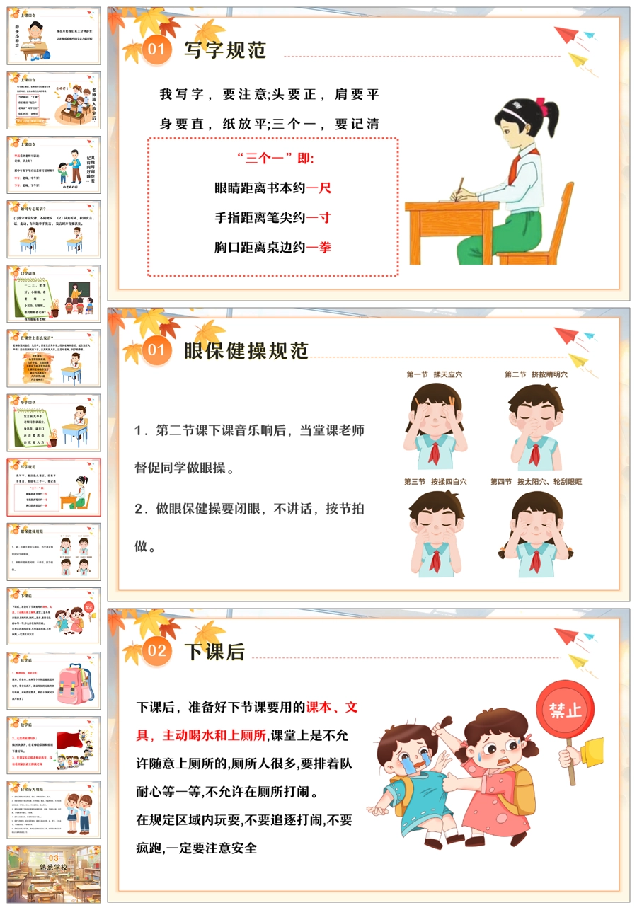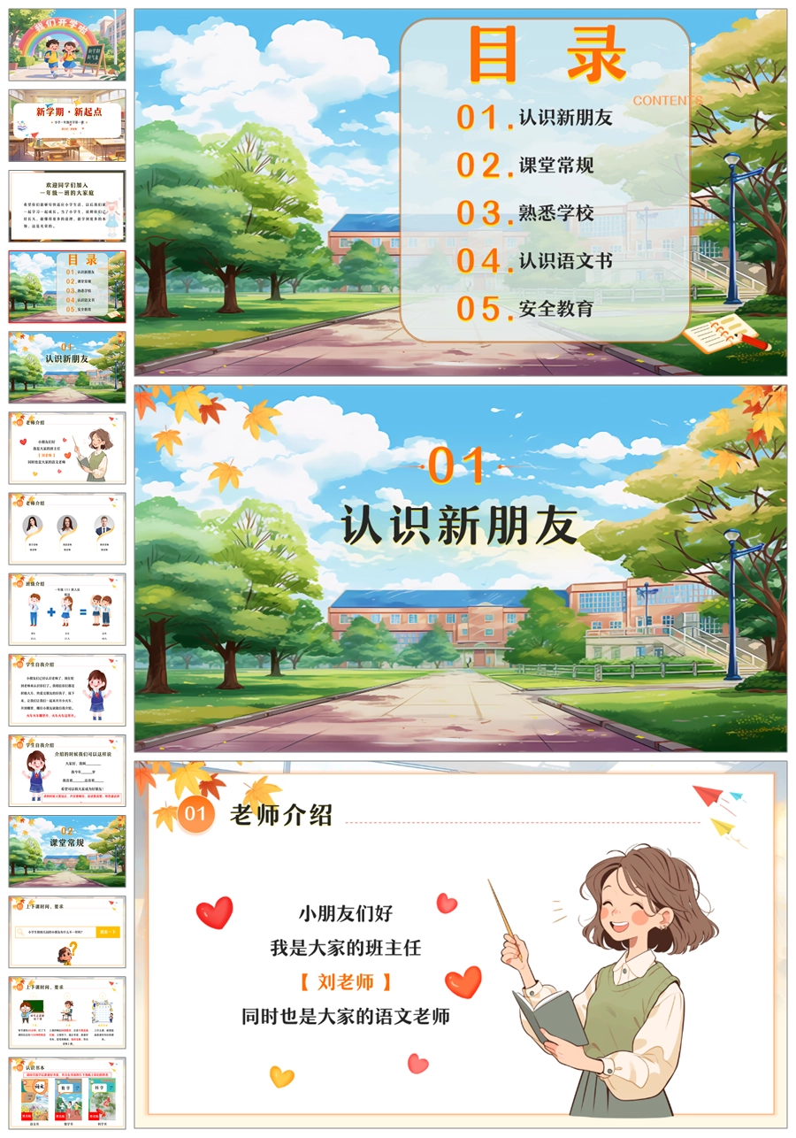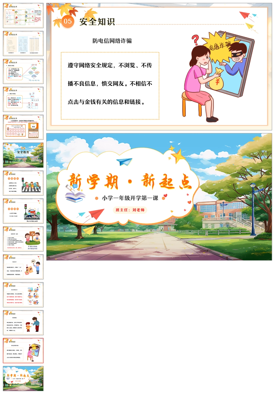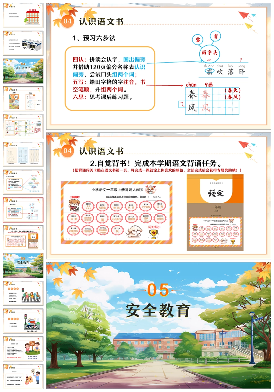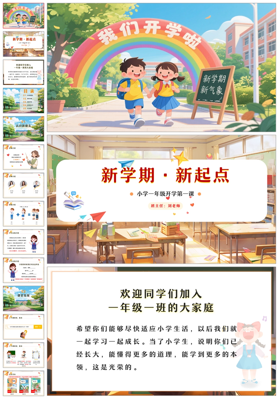 【8515】小学一年级开学第一课小学新生入学常规教育ppt+逐字稿