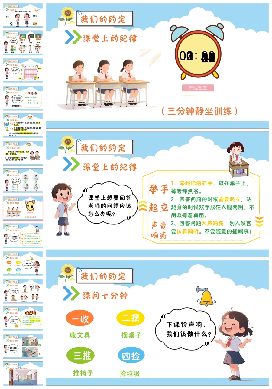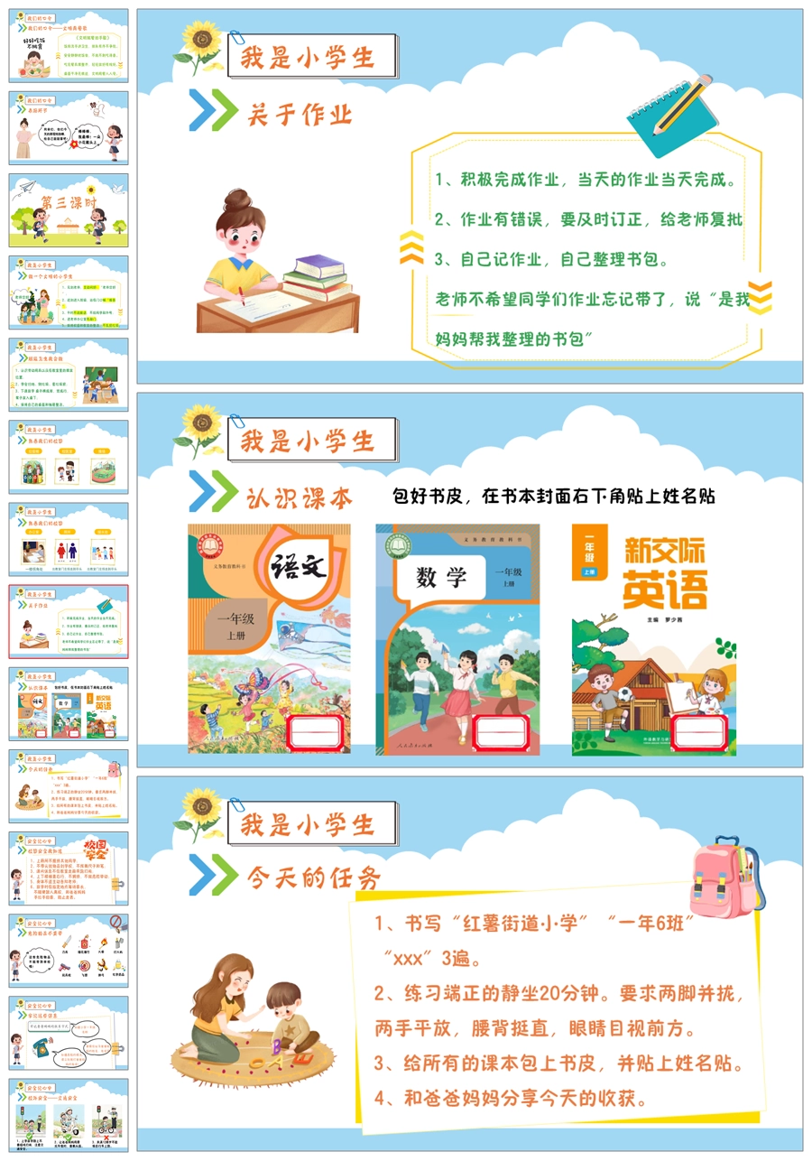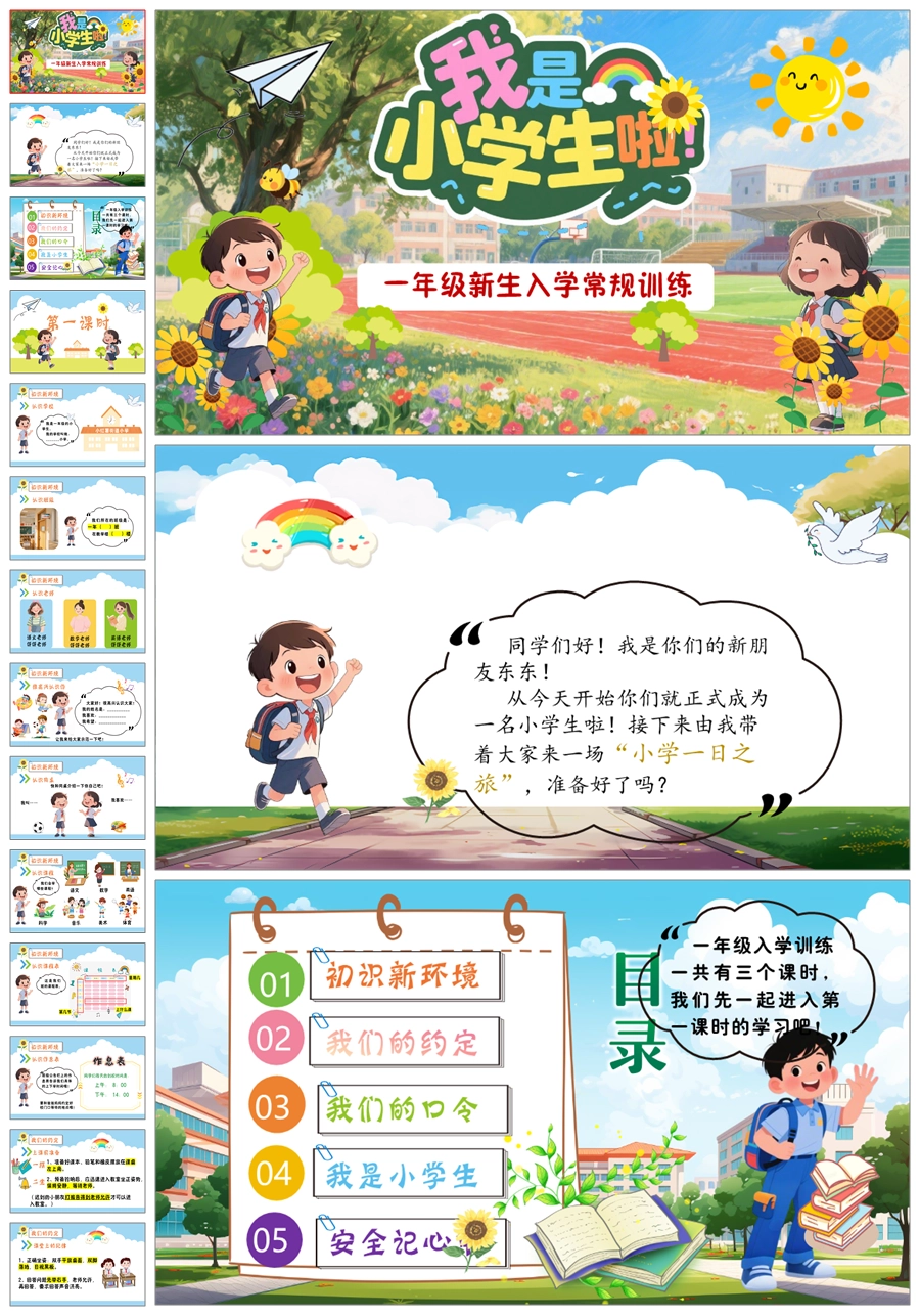 【8519】《我是小学生啦》一年级新生入学常规训练ppt课件+发言稿+视频