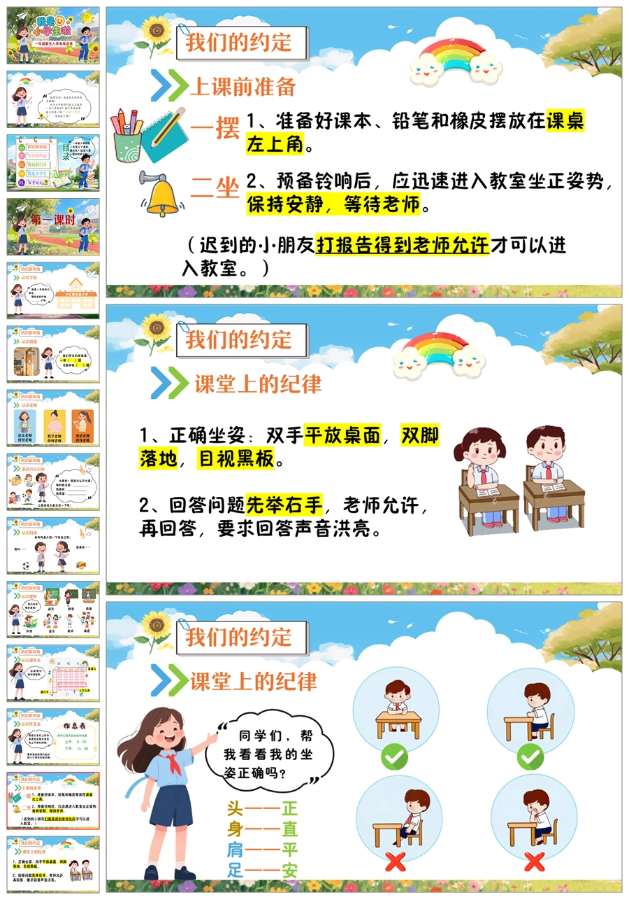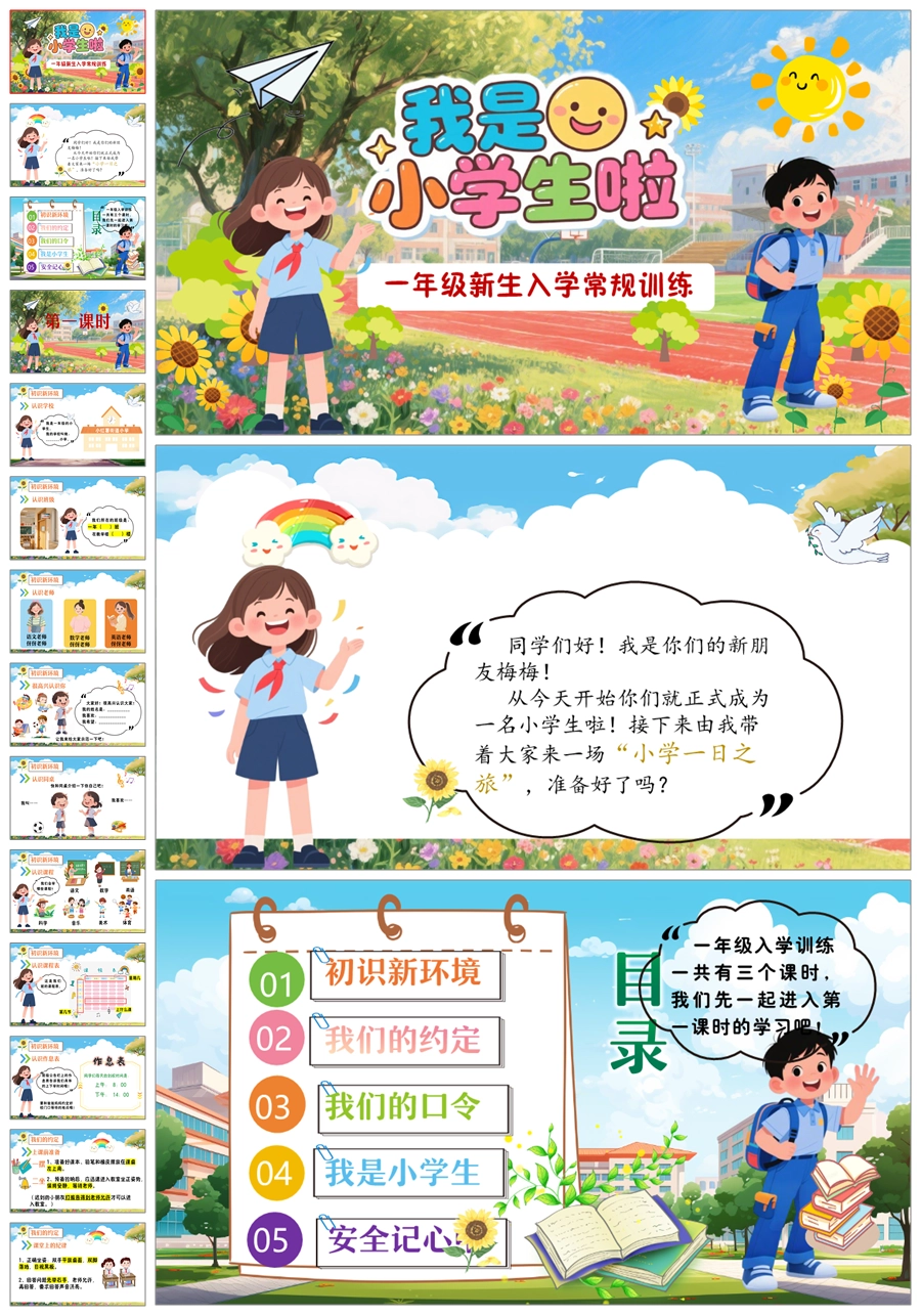 【8530】《我是小学生啦》一年级新生入学常规训练ppt课件+发言稿+视频