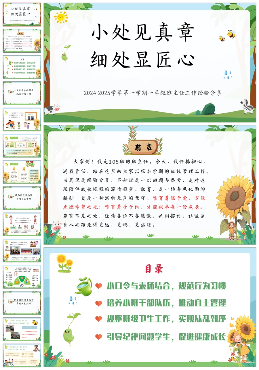 【8342】【经验分享】《小处见真章细处显匠心》班主任工作经验分享PPT(课件+发言稿)