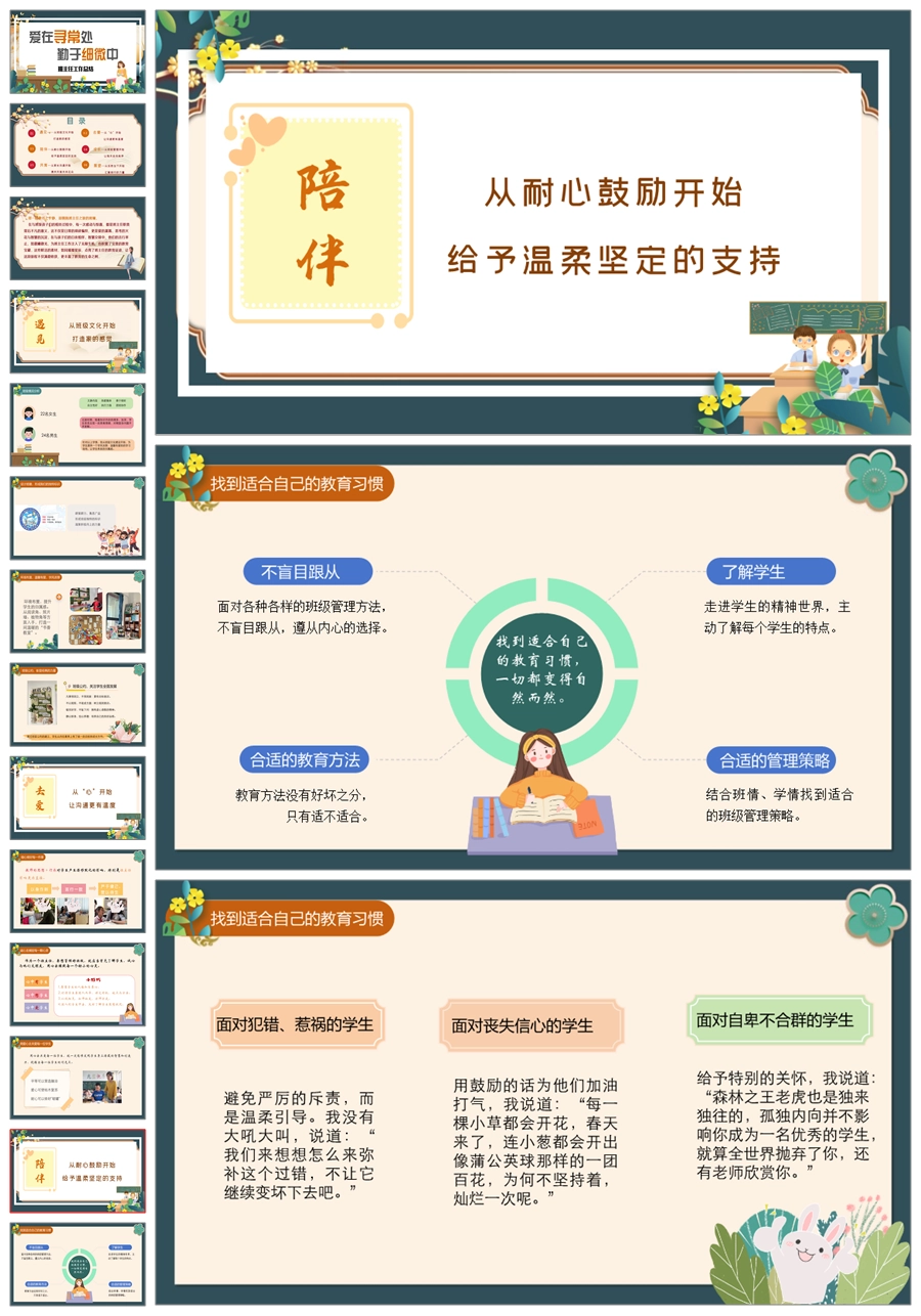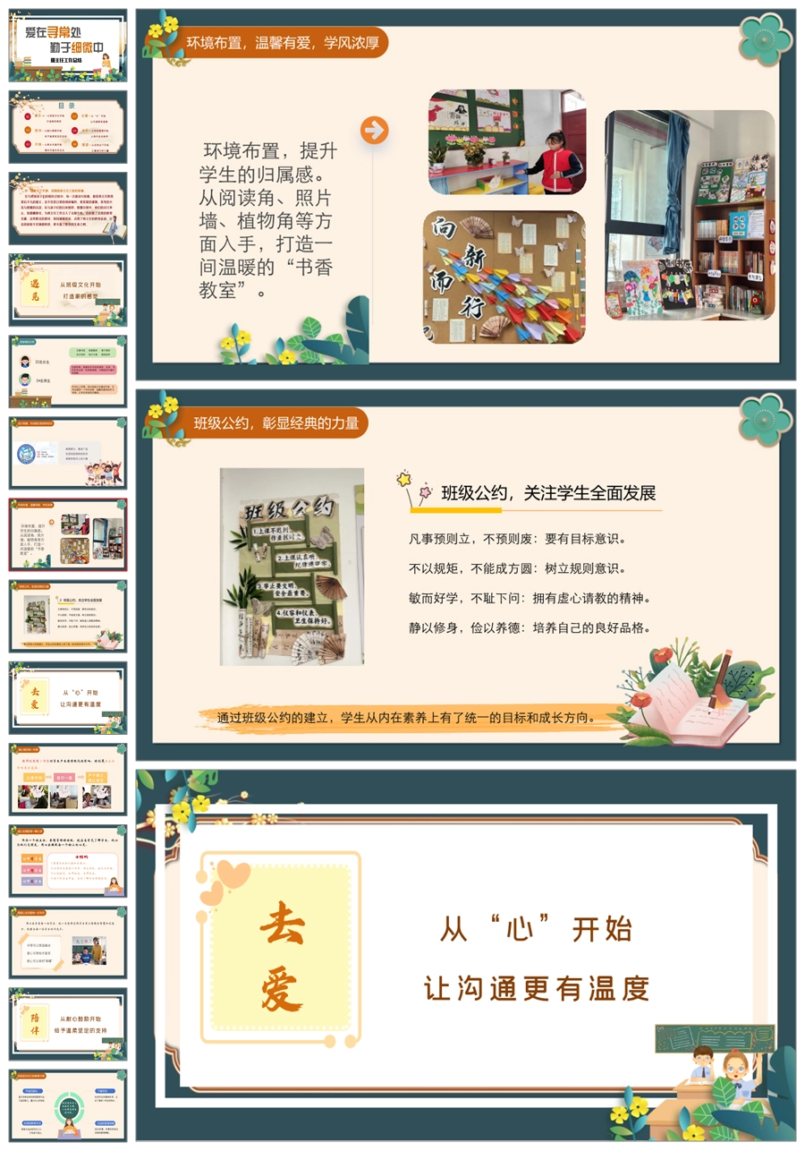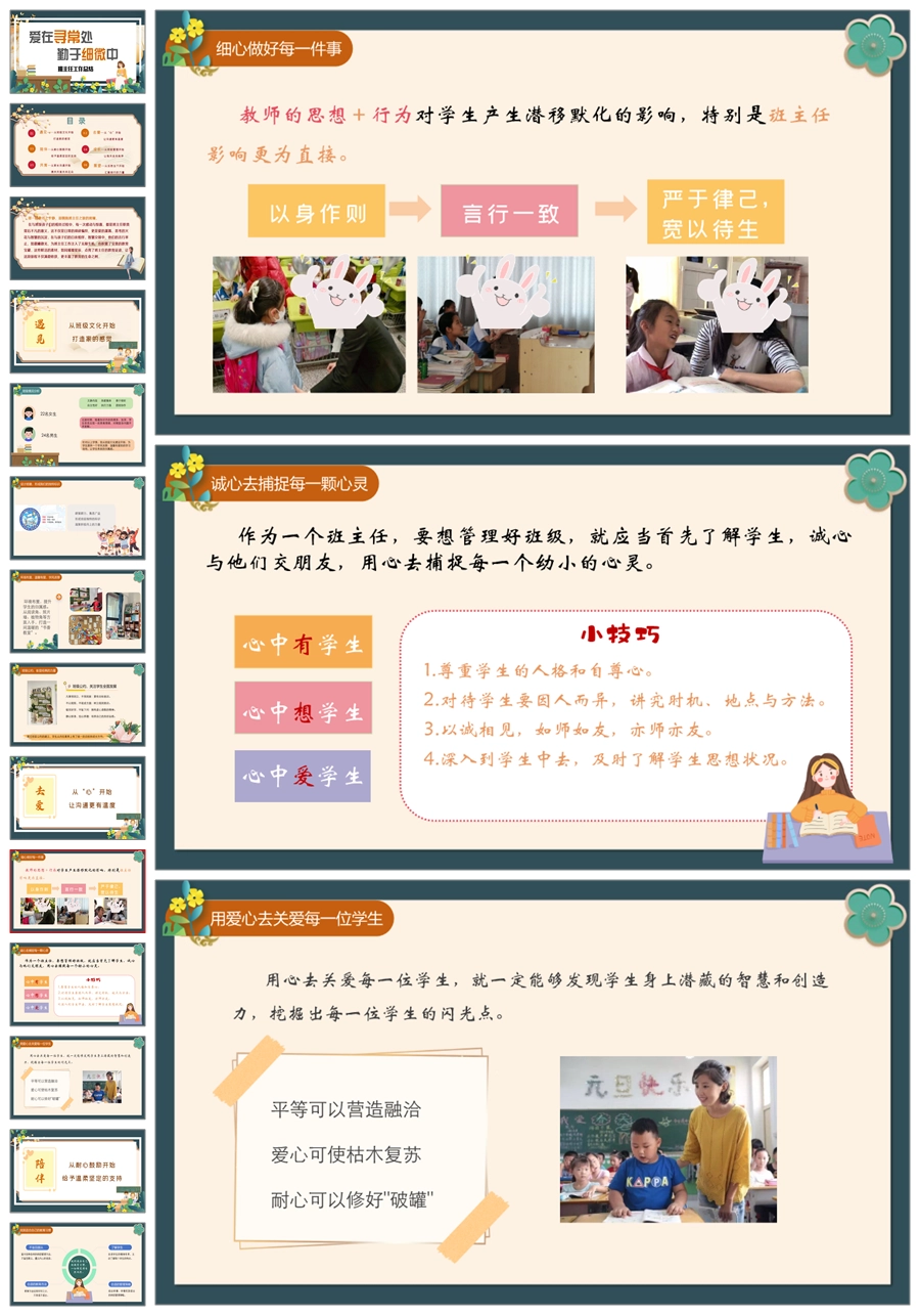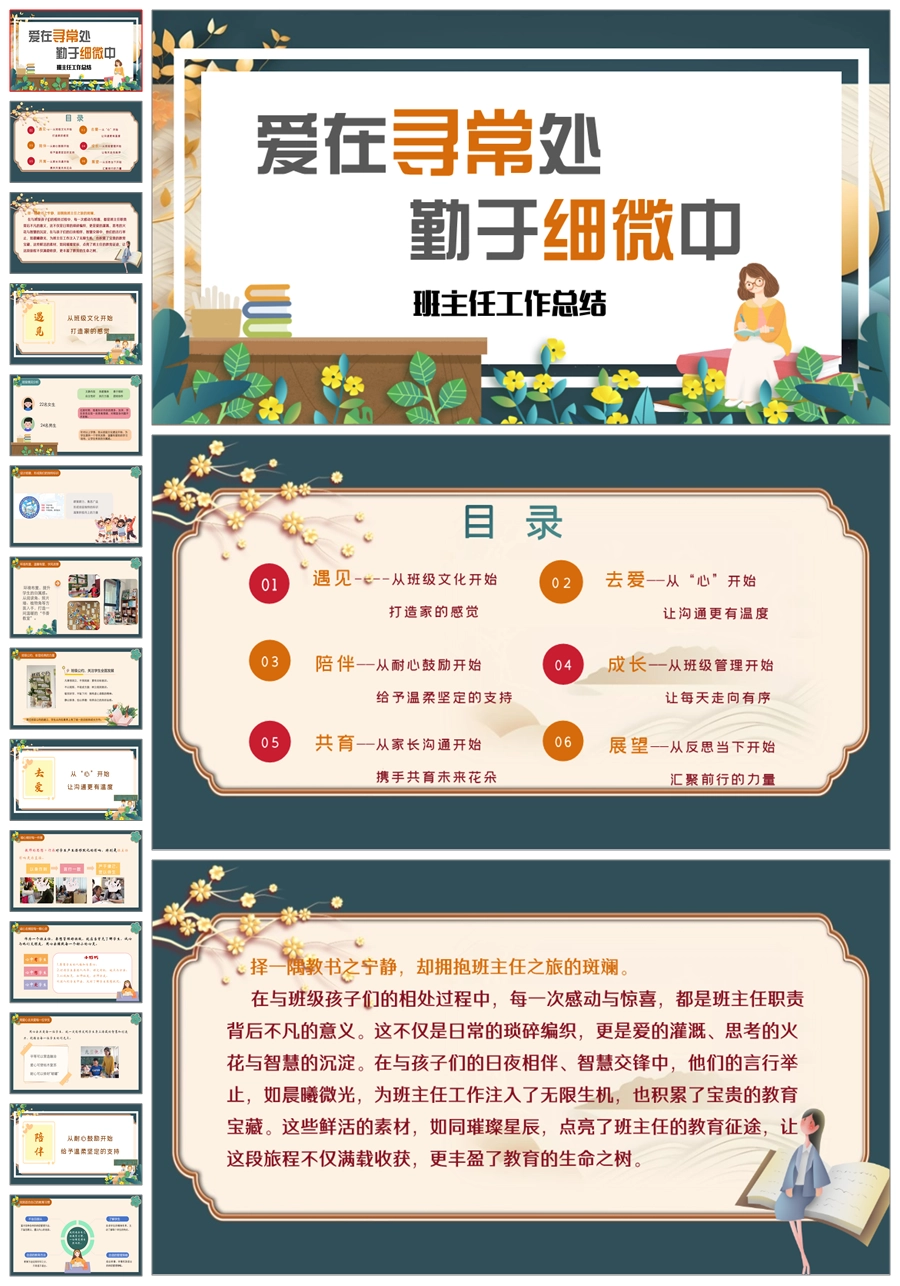 【8394】【工作总结】《爱在寻常处勤于细微中》班主任工作总结PPT(课件+发言稿)