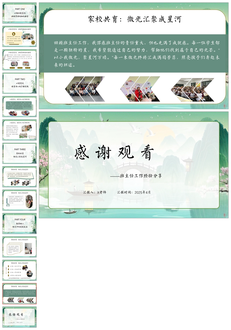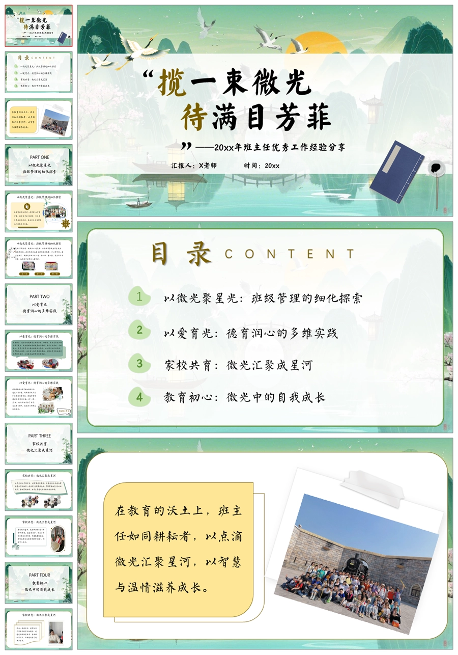 【8422】《揽一束微光》小学班主任工作经验分享PPT课件+发言稿