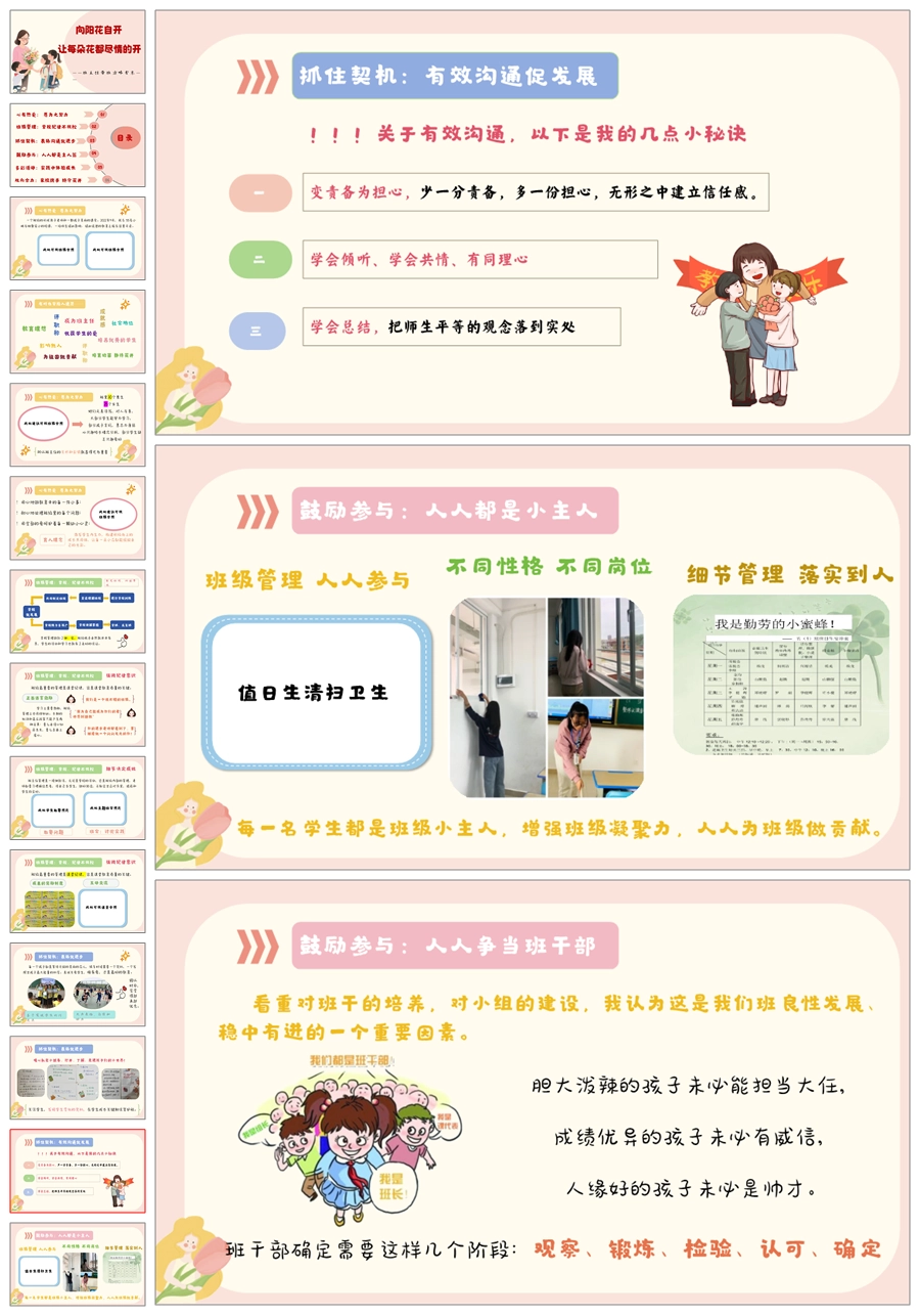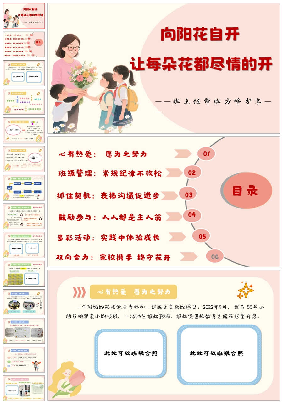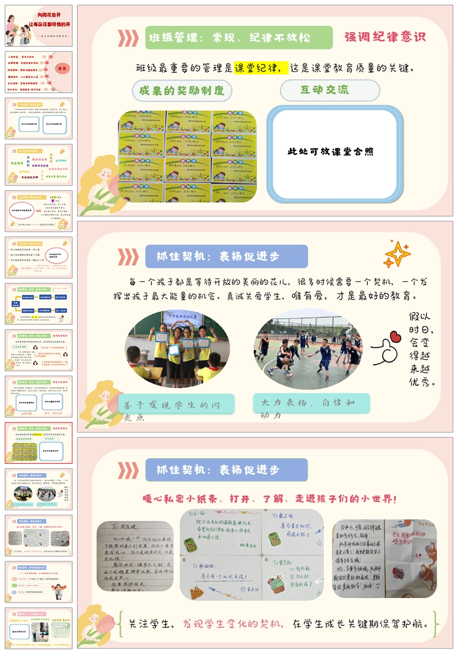 【8606】《向阳花自开,让每朵花都尽情的开》小学班主任工作经验分享ppt课件+发言稿