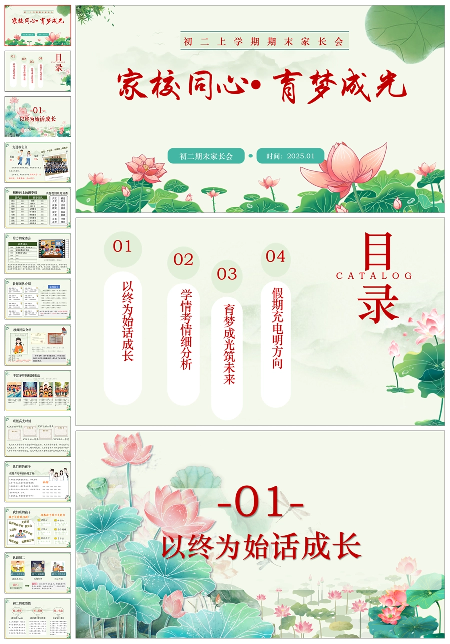 【8285】《家校同心育梦成光》八年级上学期期末家长会课件PPT(课件+教案+暖场视频)
