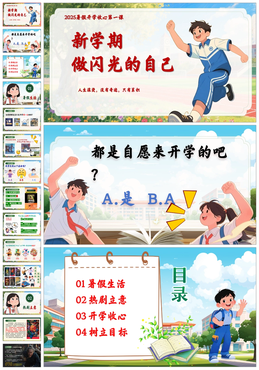 【8523】暑假开学收心第一课《新学期做闪光的自己》ppt课件+发言稿+视频