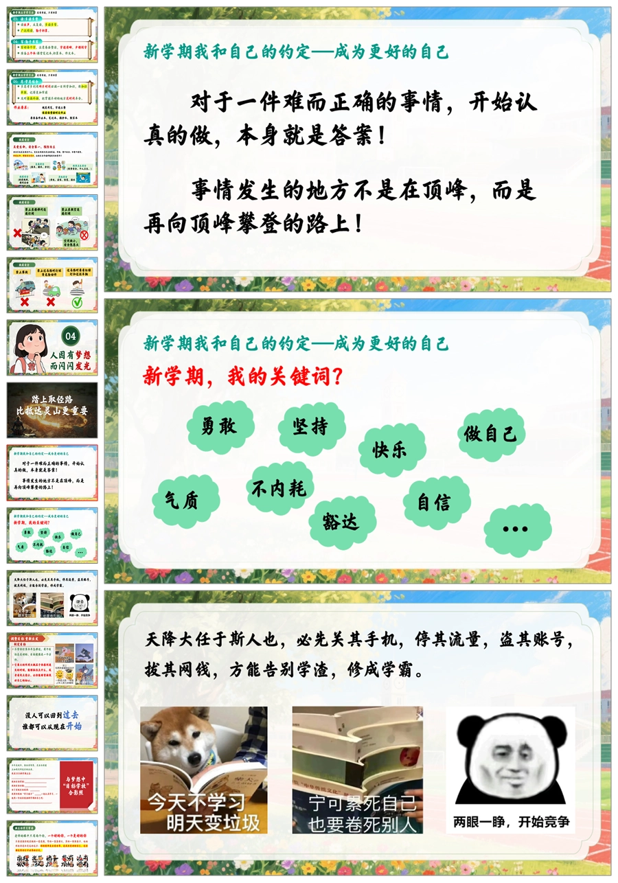【5583】《自习的静成长的劲》竹子定律班会励志主题班会PPT课件+发言稿
