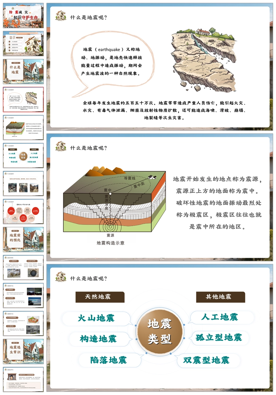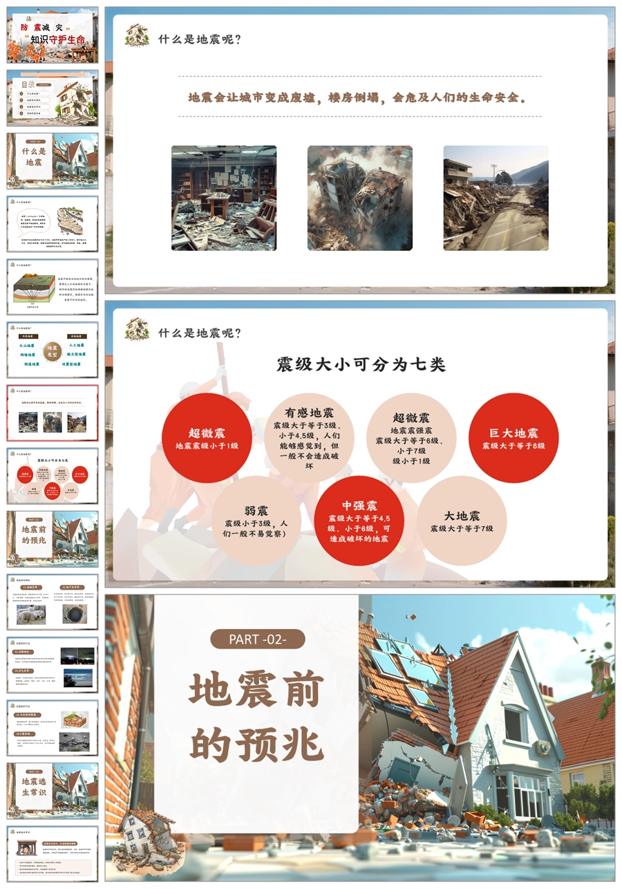 【8542】《防震减灾预防地震》安全教育主题班会ppt课件+教案