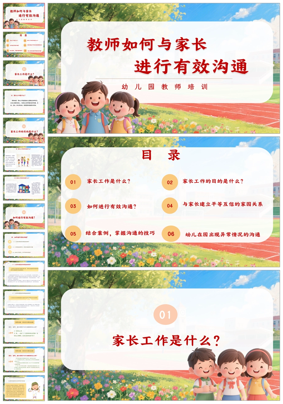 【8544】《幼儿园教师如何与家长有效沟通》幼儿园教师培训ppt课件+发言稿