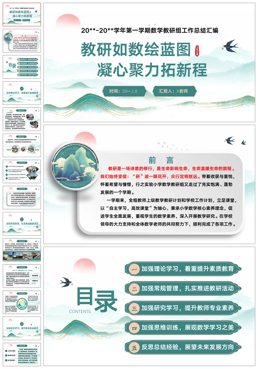 【8445】《教研如数绘蓝图》数学教研组数学科组工作总结ppt课件+配套发言稿
