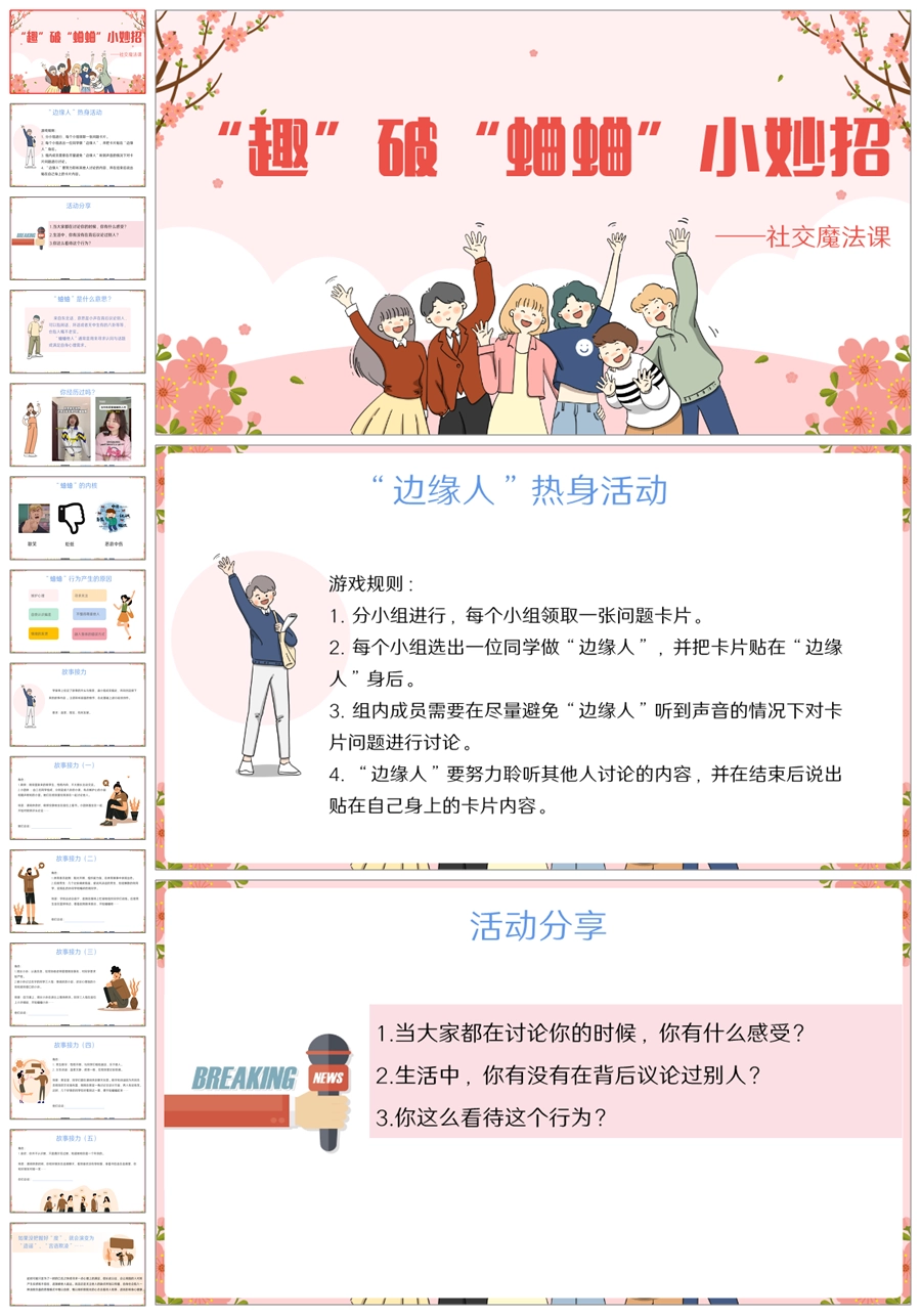 【8477】人际交往主题班会《趣破“蛐蛐”小妙招》PPT课件+教案+逐字稿