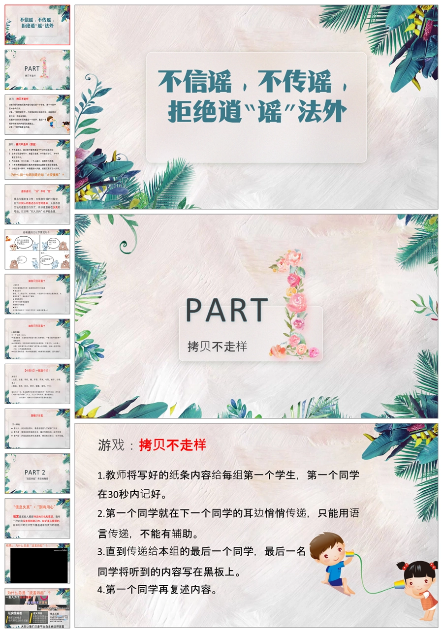 【8486】校园文明礼仪主题班会《不信谣不传谣》ppt课件+教案