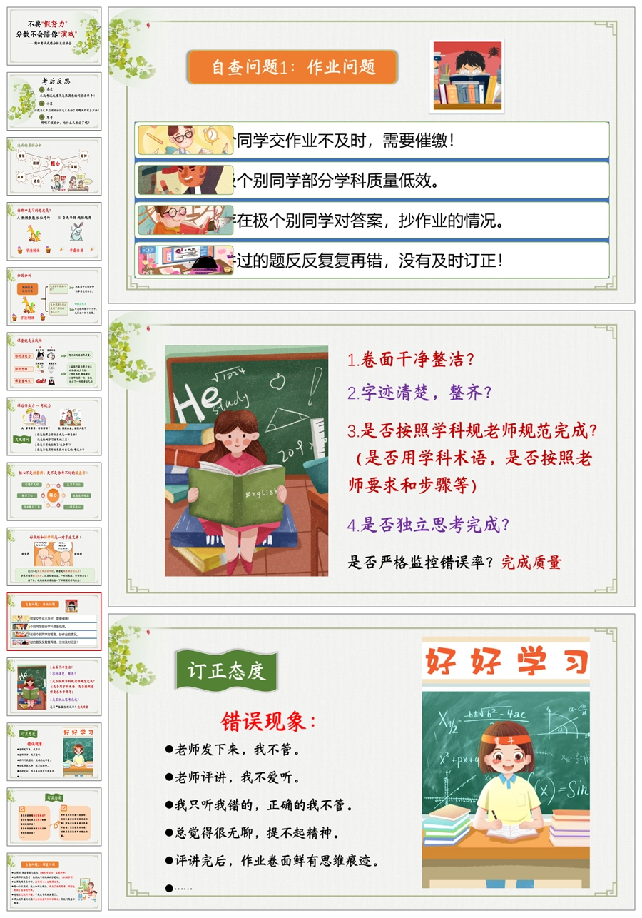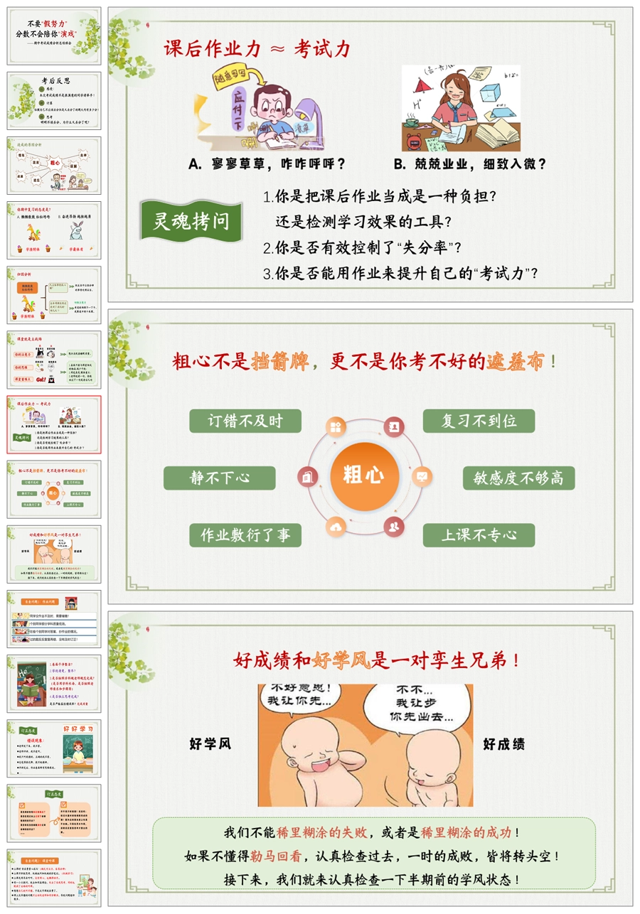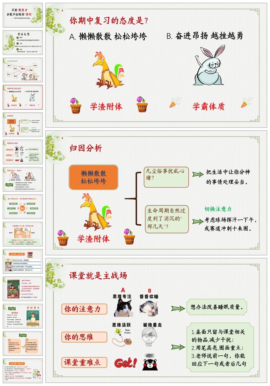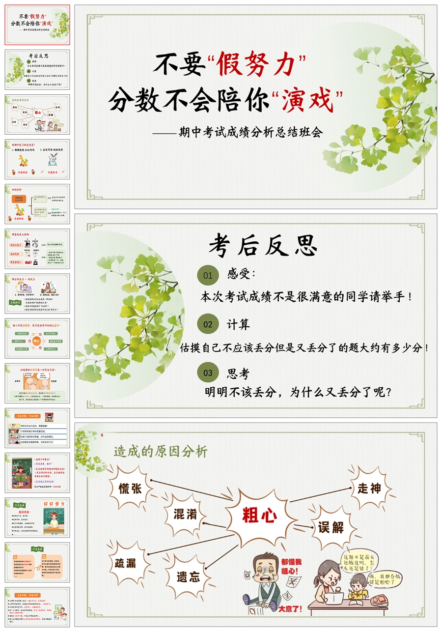 【8556】《不要假努力分数不会陪你演戏》期中考试成绩分析总结班会ppt课件+发言稿+视频
