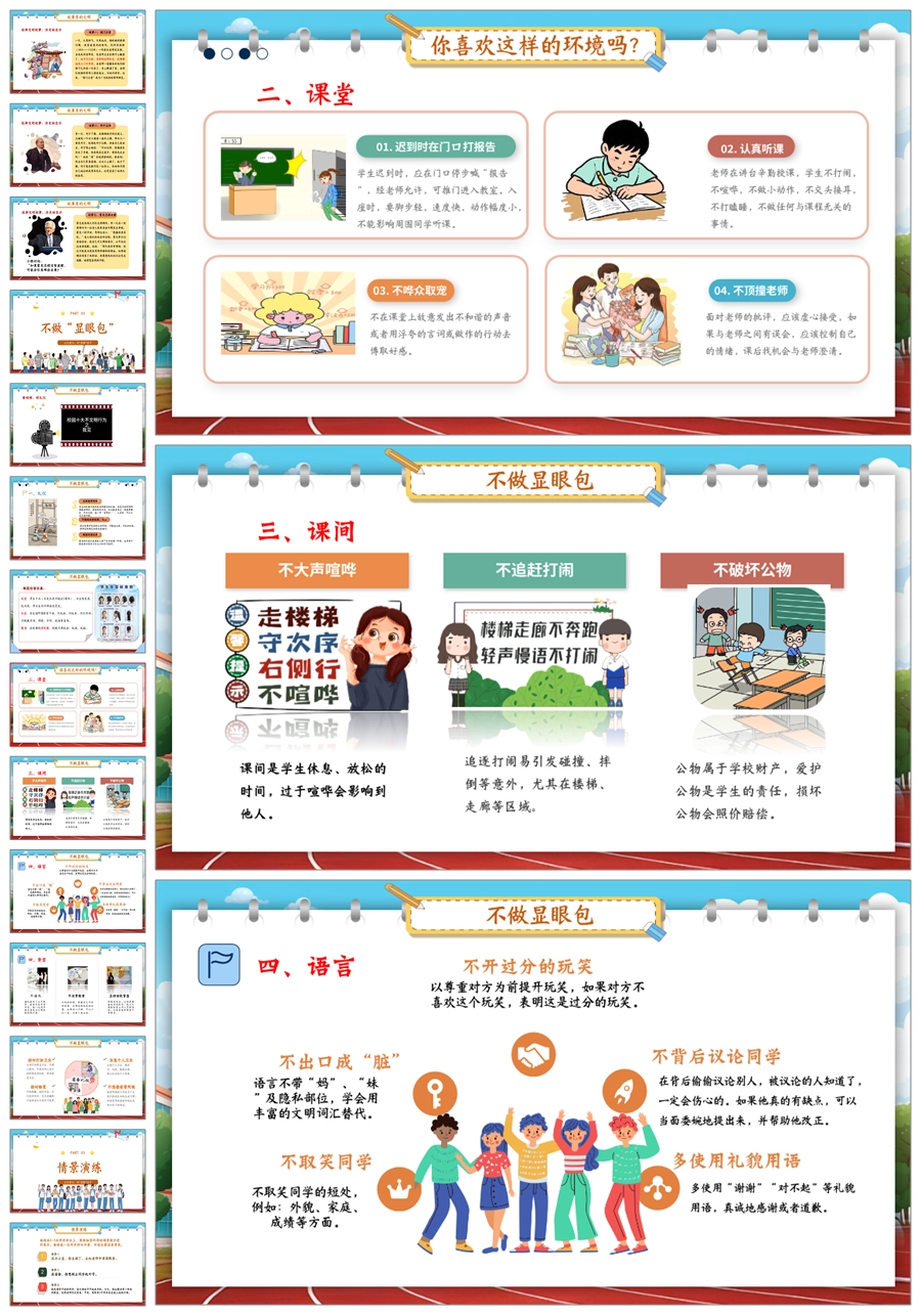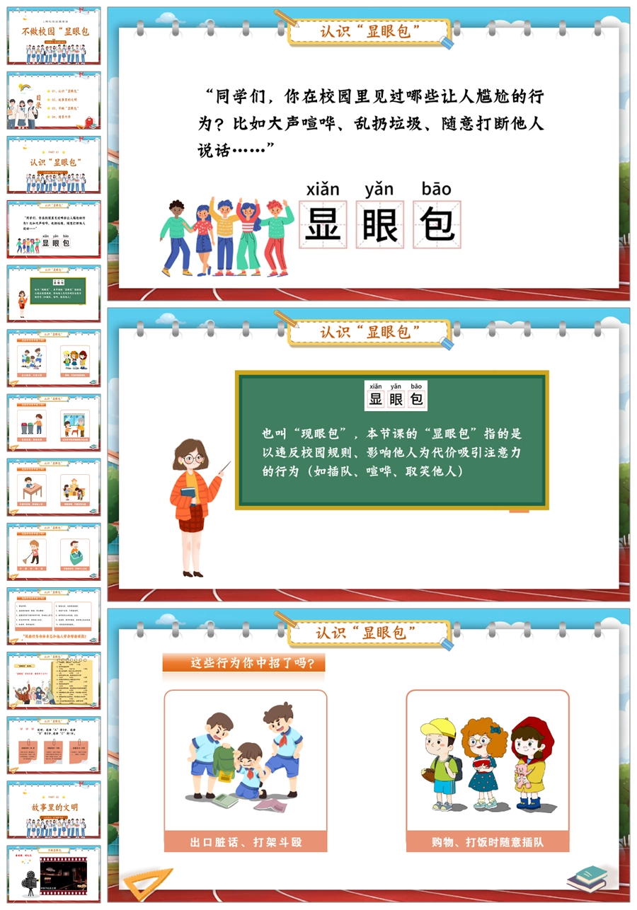 【8578】《不做校园显眼包》校园文明礼仪主题班会PPT课件+教案