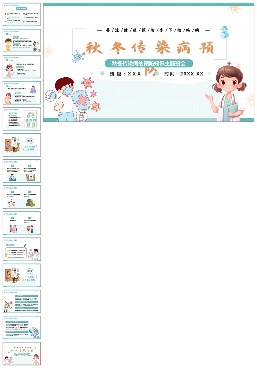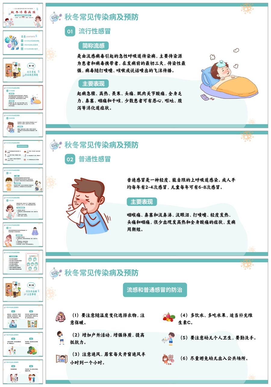 【8595】秋冬传染病预防教育PPT课件+教案+视频